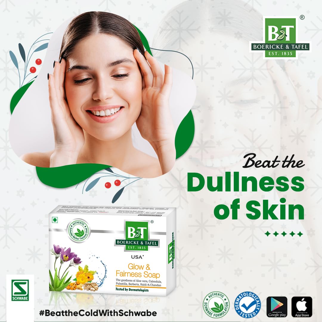 B&T Glow & Fairness soap has the goodness of Aloe vera, Calendula, Pulsatilla, Berberis Aquifolium, Curcuma and Sandalwood and helps to protect the skin while making it soft. It improves the skin tone, increases the glow and protects the skin from infections.