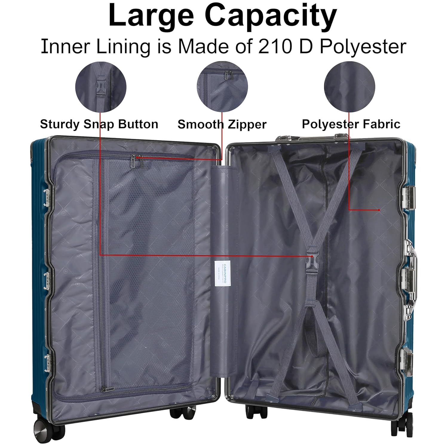 Comprehensive Material: Our Hardshell luggage is made of comprehensive materials. The luggage body is made of Polycarbonate coated with aluminum frame and the inner lining is made of 210 D polyester with mesh pockets.