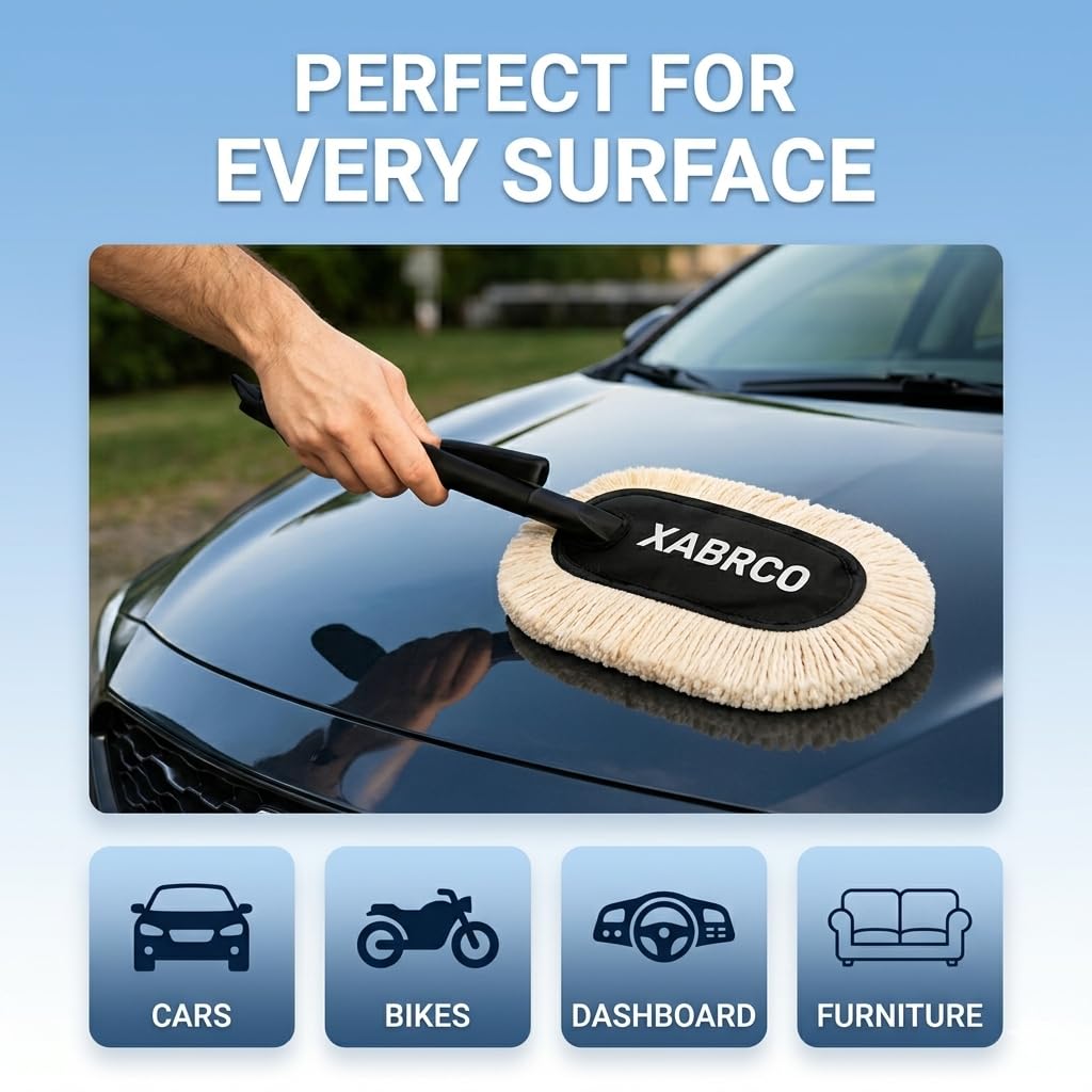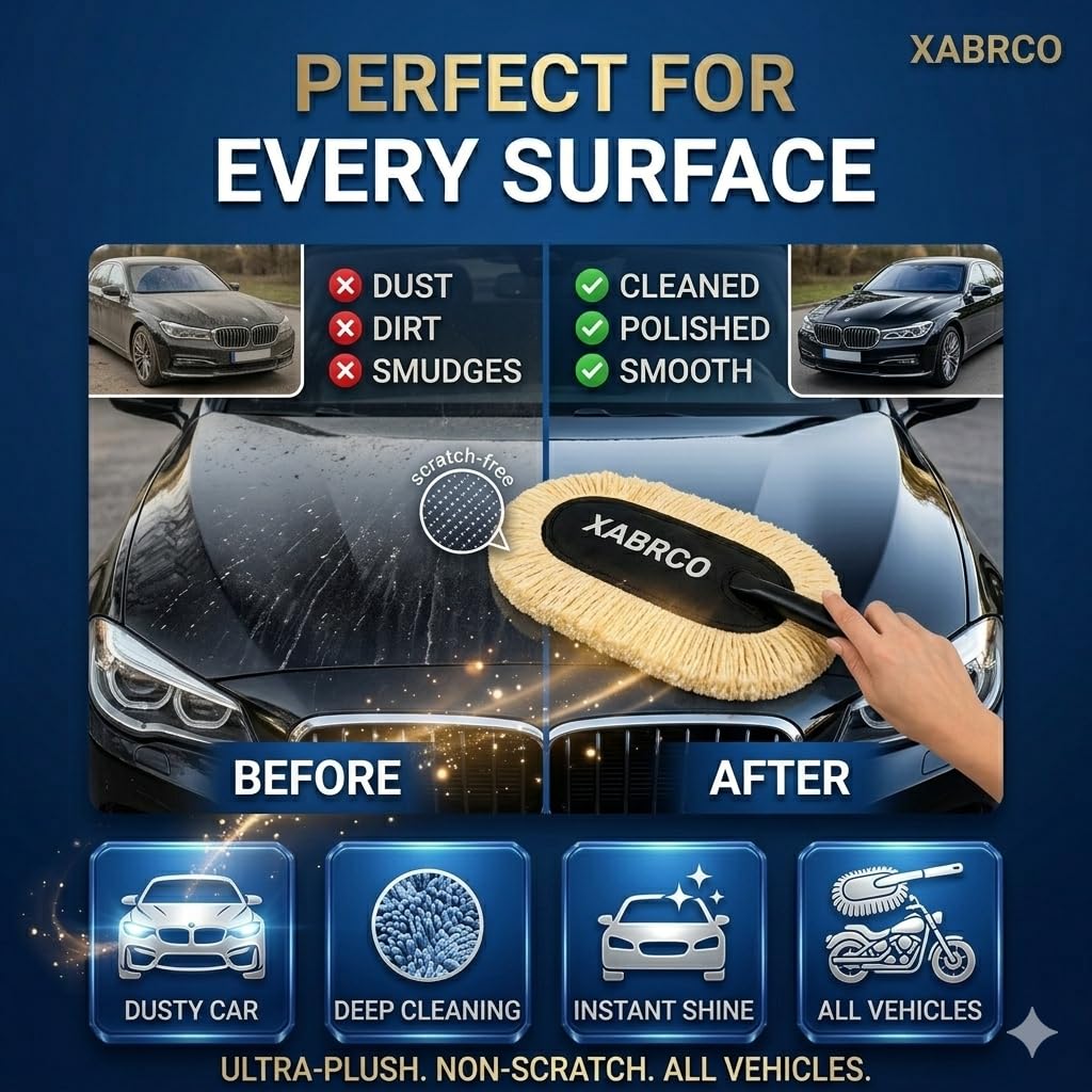 Premium wax-coated microfiber lifts dust gently, ensuring scratch-free cleaning, wide coverage, and long-lasting shine for cars, bikes, and SUVs.