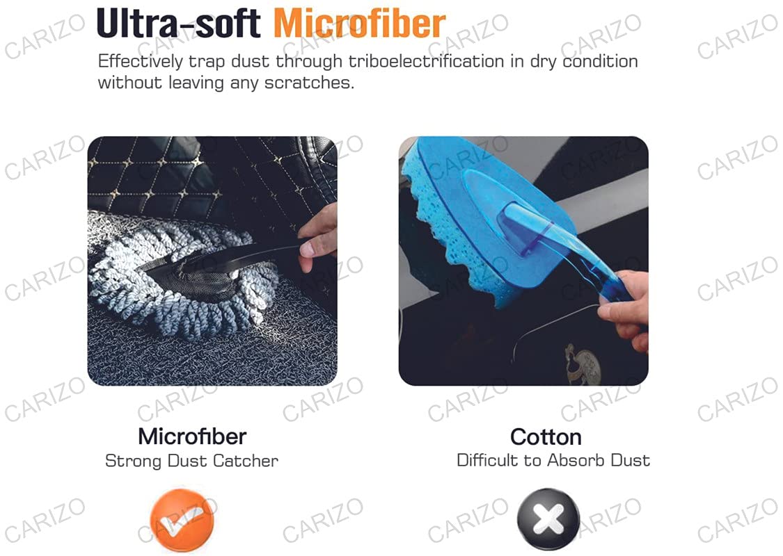 Flat Head Design: Helps block the dust and prevent it from being picked up again and even flung back onto your cleaned car.