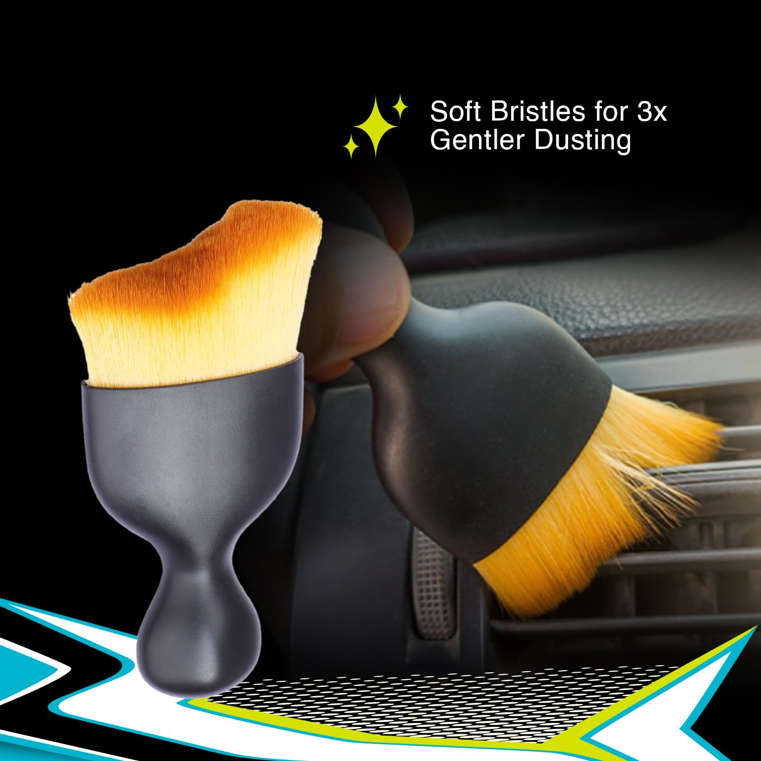 COMFORTABLE GRIP HANDLE- The handle is made of high-quality PP, non-slip groove design provides a comfortable grip. No metal and hard parts to protect your vehicle from wear and scratches.Quickly leaves your dashboard dust-free, feels lighter and less labor-intensive, and fits in your glove box. Save space in the car without cluttering up the space with too many tools.