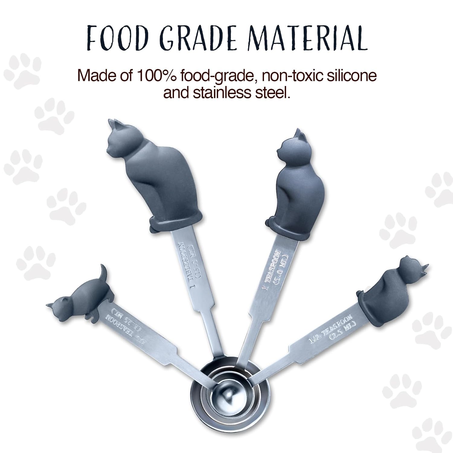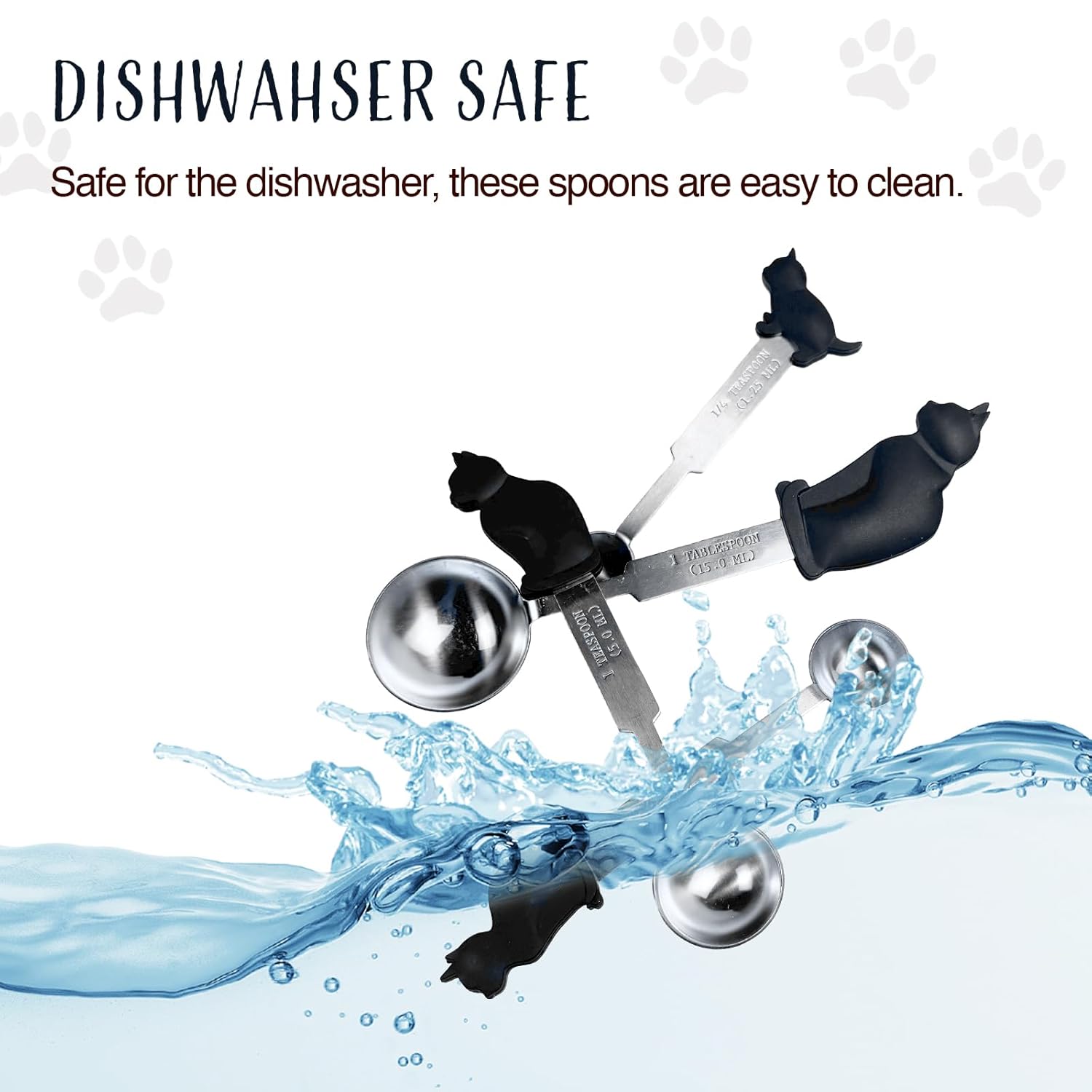 Cat Measuring Spoons Set, 4-Piece Stainless Steel Measuring Spoons with Cute Cat Handles, Accurate Teaspoon & Tablespoon Sizes for Dry or Liquid Ingredients, Dishwasher Safe