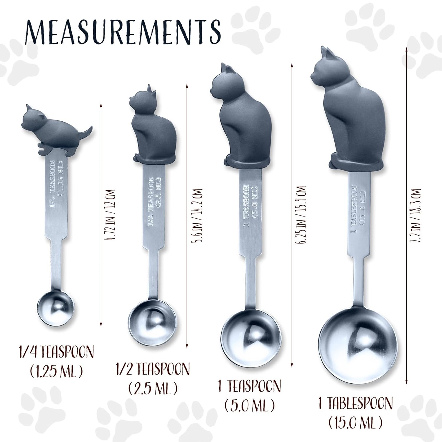 Purr-fect Accuracy: Includes ¼ teaspoon (1.25 ml), ½ teaspoon (2.5 ml), 1 teaspoon (5 ml), and 1 tablespoon (15 ml) to ensure every recipe is measured to perfection.