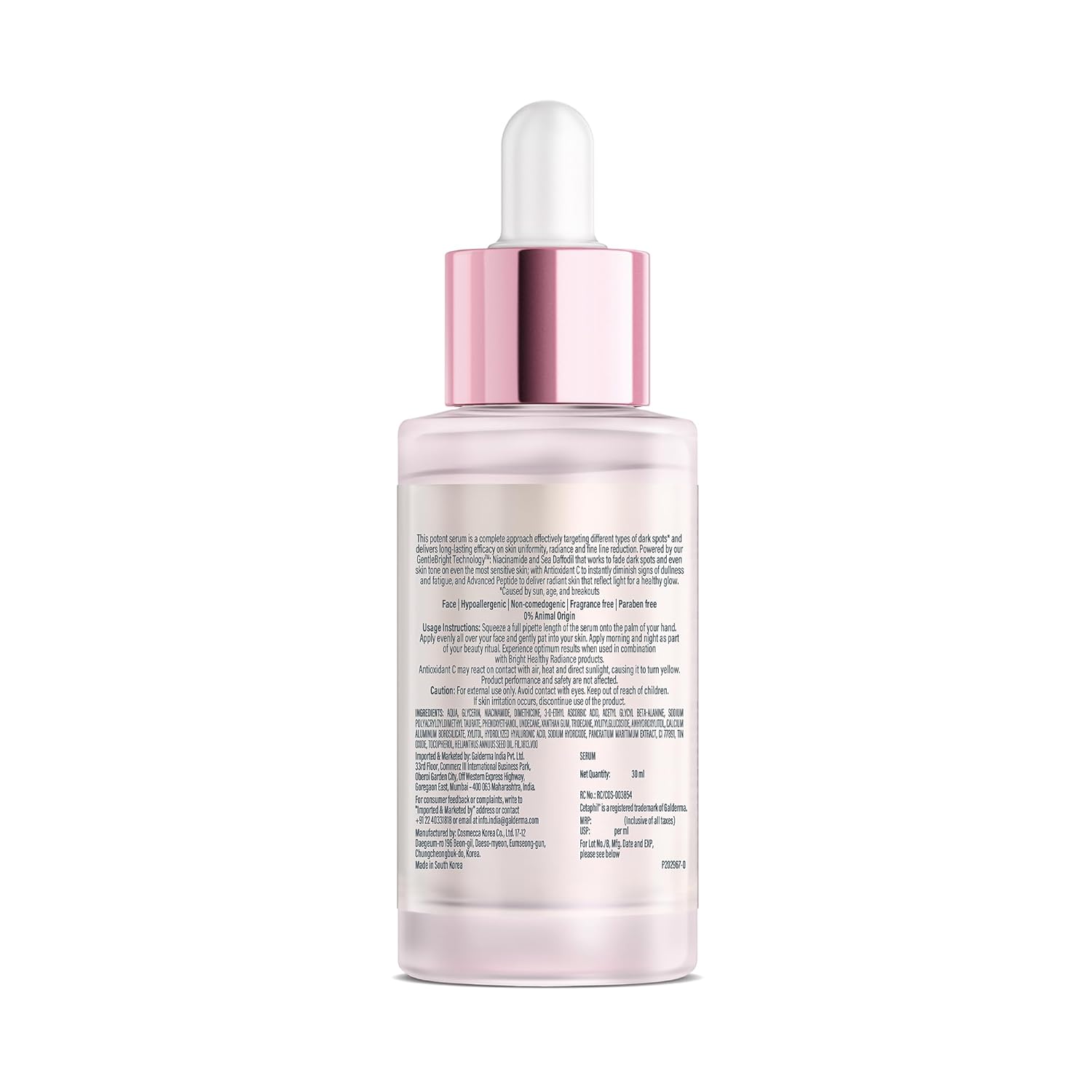 NEXT GENERATION GENTLEBRIGHT TECHNOLOGY: Niacinamide (vitamin B3), Sea daffodil, and now with Antioxidant C and Advanced Peptide for clinically proven results in as fast as 14 days