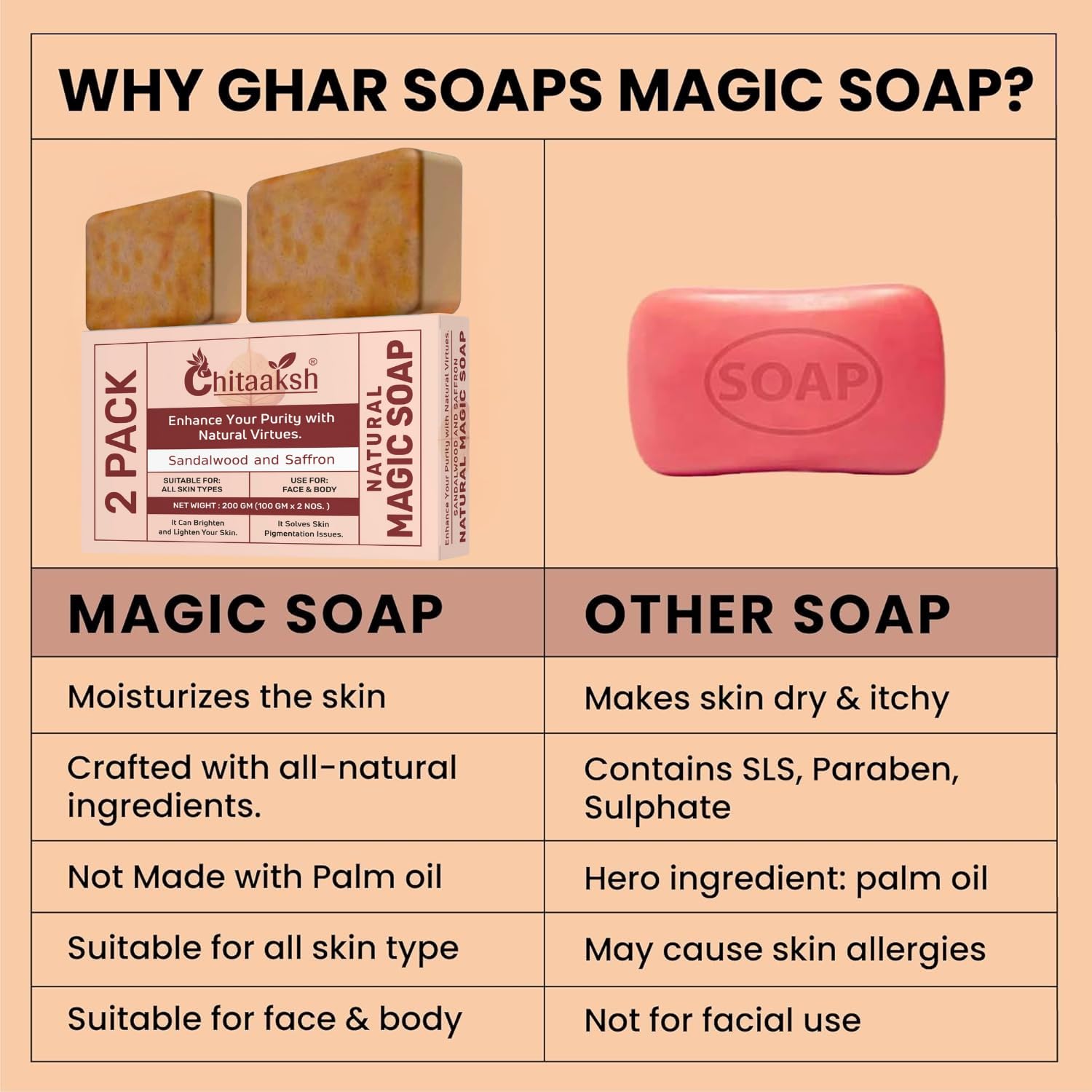 Sandalwood & Saffron Magic Soaps For Bath (300 Gms Pack Of 3) | Paraben Free | Chandan & Kesar Bath Soap | Handmade Soaps For Glowing | Skin Brightening Soap For Men & Women Pack 3