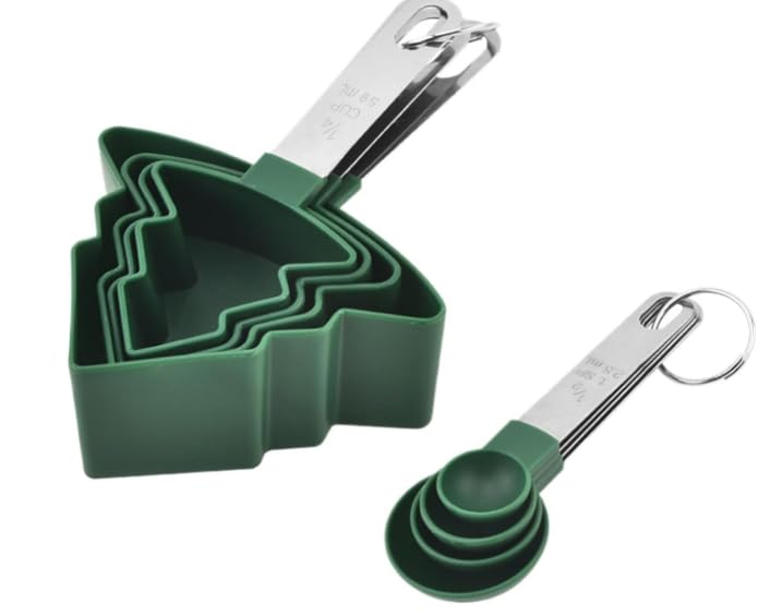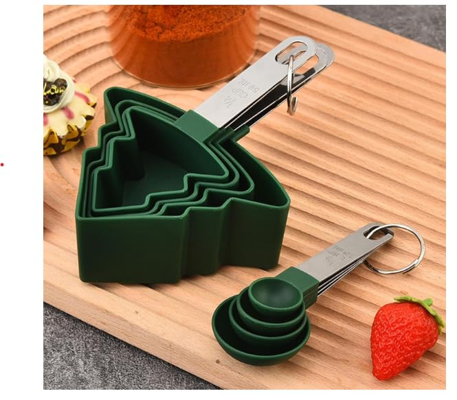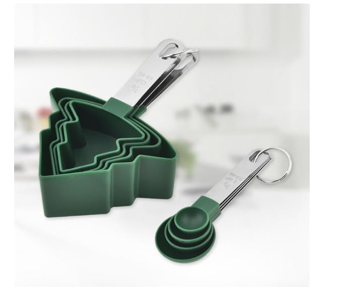 Add a touch of festive joy to your kitchen with our Christmas Tree Measuring Cups & Spoons Set. This 8-piece set is as practical as it is adorable, featuring accurate measurements for both dry and liquid ingredients. The unique tree-shaped cups bring holiday spirit to your baking while the sleek stainless steel handles ensure durability and a comfortable grip.
