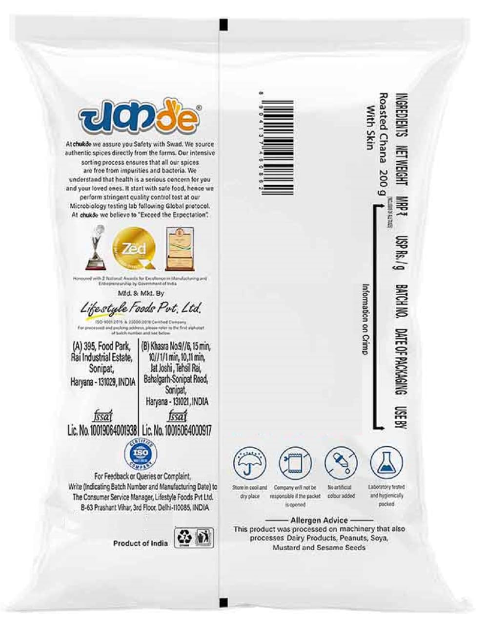 Manufacturer : Life Style Foods Pvt Ltd., Lifestyle Foods Pvt Ltd, Lifestyle Foods Pvt Ltd. B-63 Prashant Vihar, 3rd Floor, Delhi-110085, INDIA 011-46370000 info@chukde.com