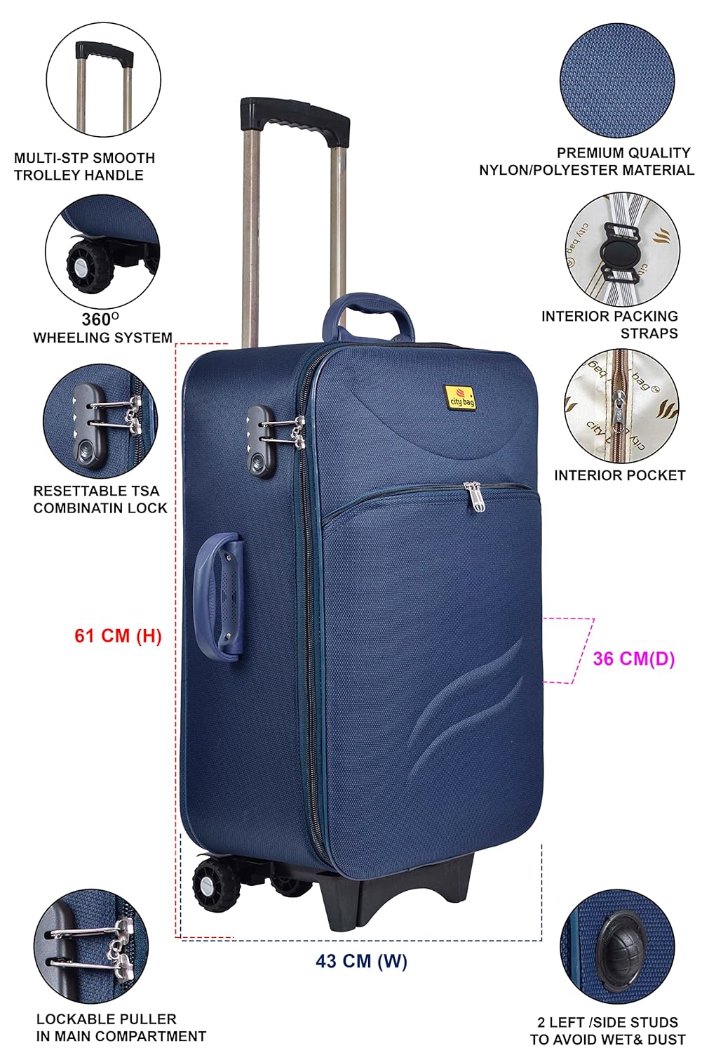 Be the first to review “CITY BAG Medium Cabin Luggage Bag(61cm) Travel Bag Trolley Bag Three Wheel and Number Lock (Blue)” Cancel reply