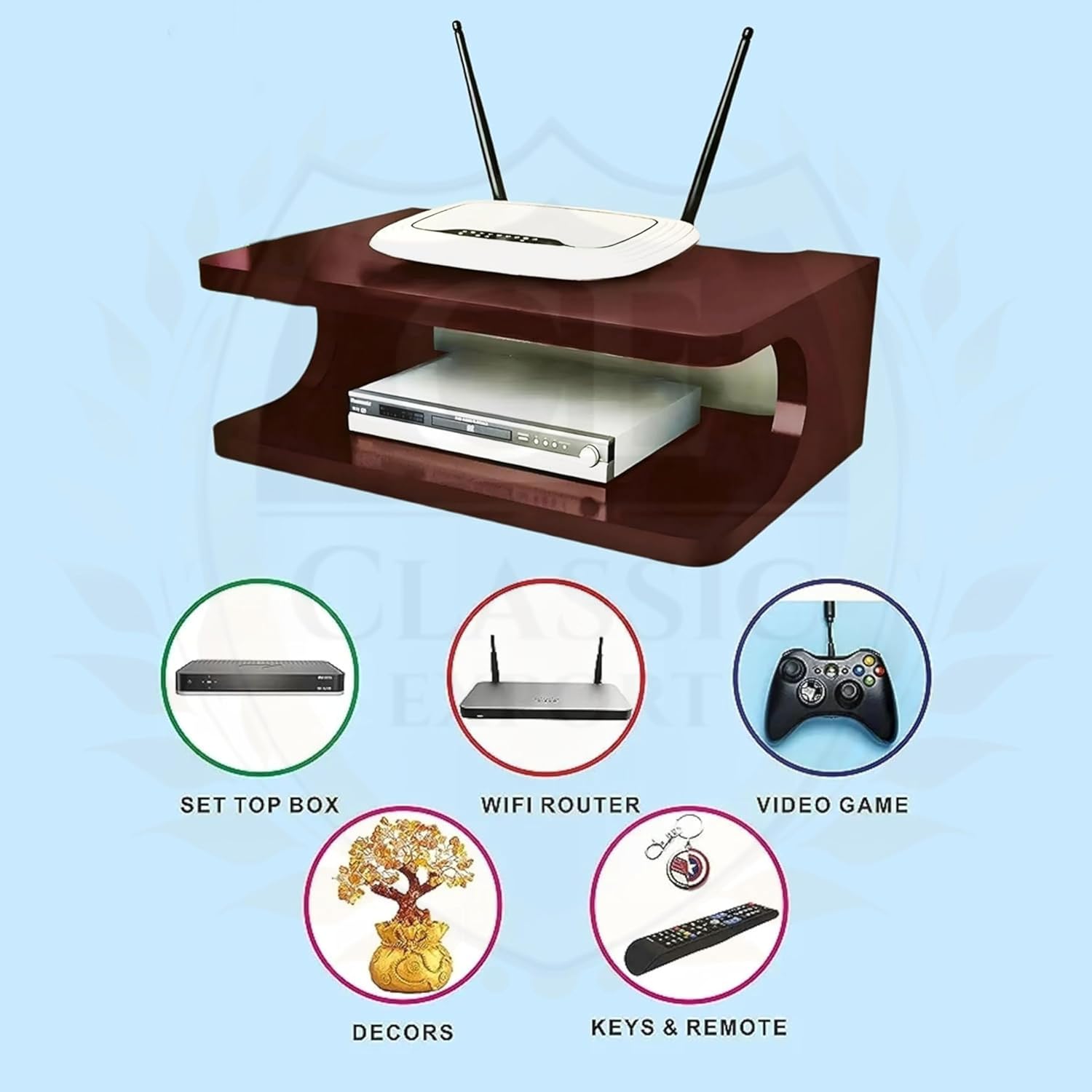 Classic Export Engineered Wood Setup Box Stand, designed to enhance your entertainment space and keep your electronics organized. Crafted from high-quality engineered wood, this wall-mounted shelf is built to hold and display a range of devices, including set-top boxes, WiFi routers, speakers, gaming consoles, and streaming devices. Its sleek design complements any decor, making it a chic and practical addition to any room.