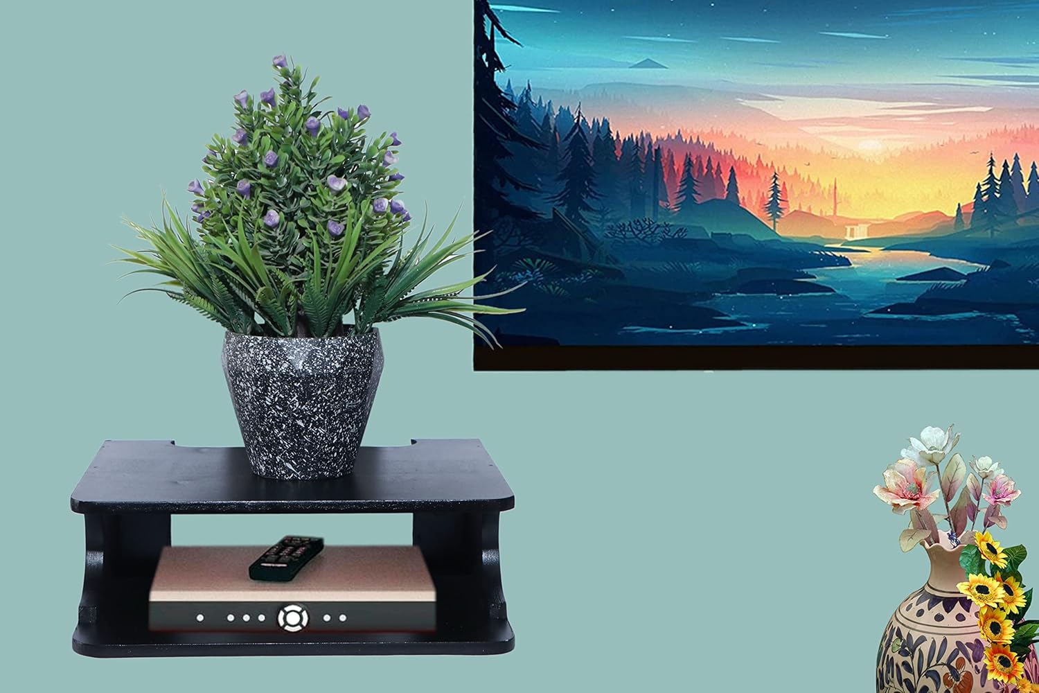 Versatile Design: This set top box stand is a stylish and functional wall shelf that can hold your WiFi router, TV setup box, or other home entertainment devices.