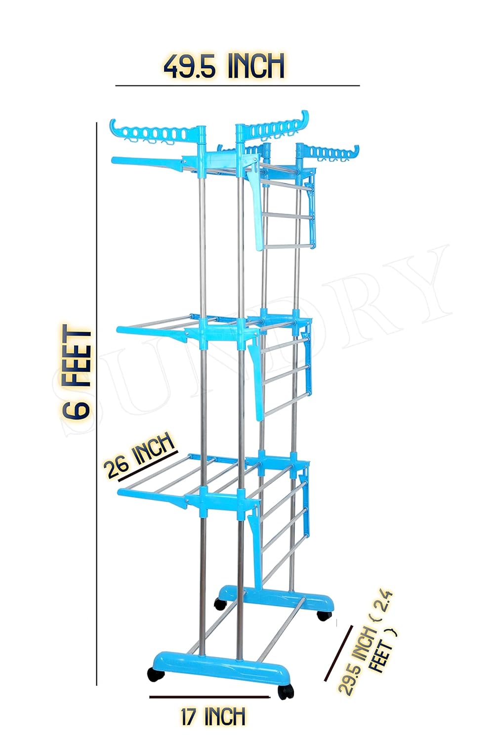 🧦EASY TO MOVE👔 The clothes dryer rack is equipped with 4 wheels that can be rotated 360 degrees, making it easy to move it anywhere for drying. Two of the wheels are equipped to prevent the clothes from moving while drying.