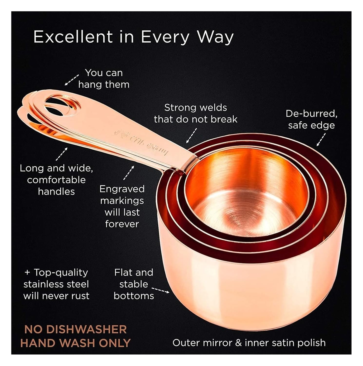 ⭐ SUPERIOR QUALITY – Precise measuring accuracy. Made from top-quality stainless steel metal to endure daily kitchen use. Sturdy, durable, with flat and stable bottoms. Please note to HAND WASH ONLY!