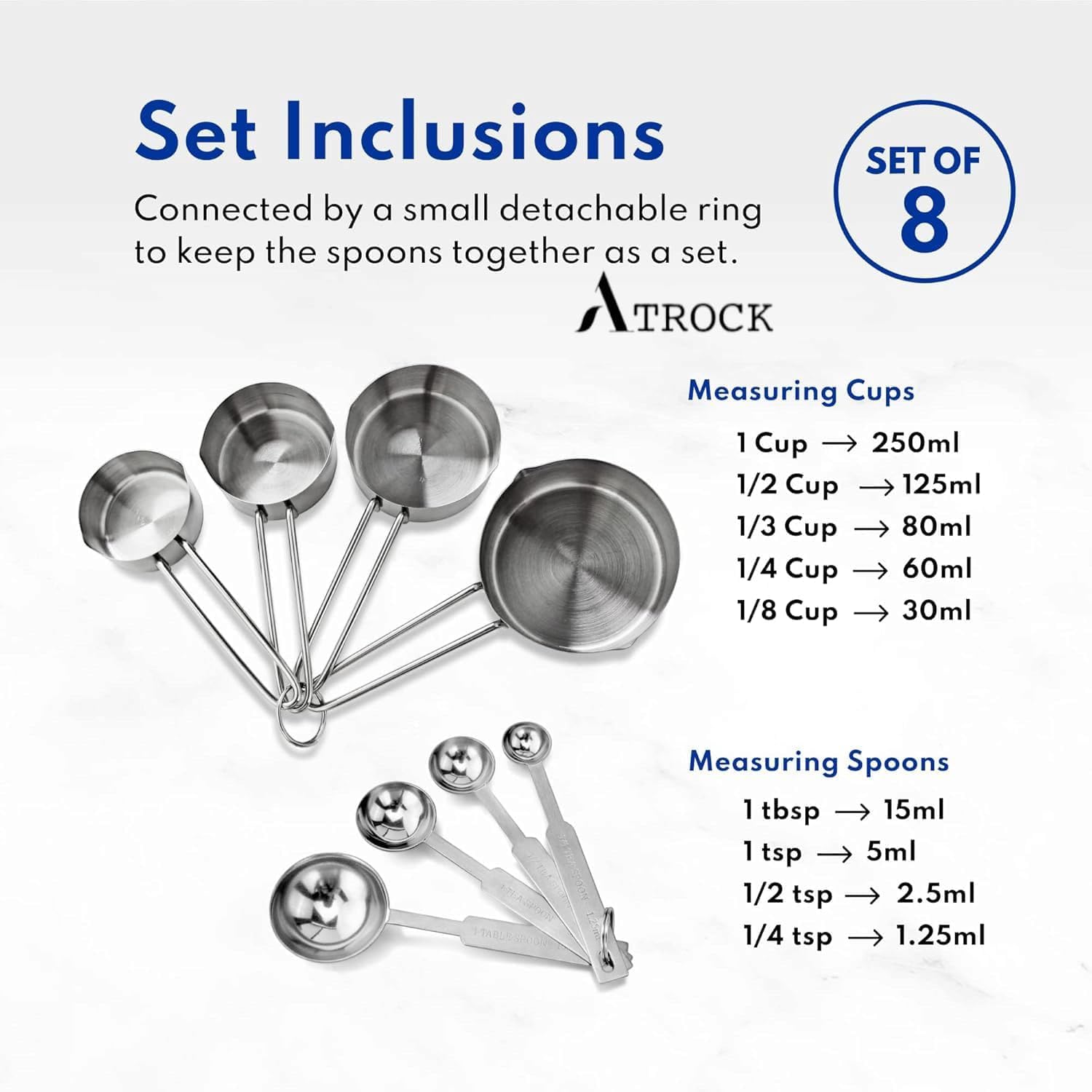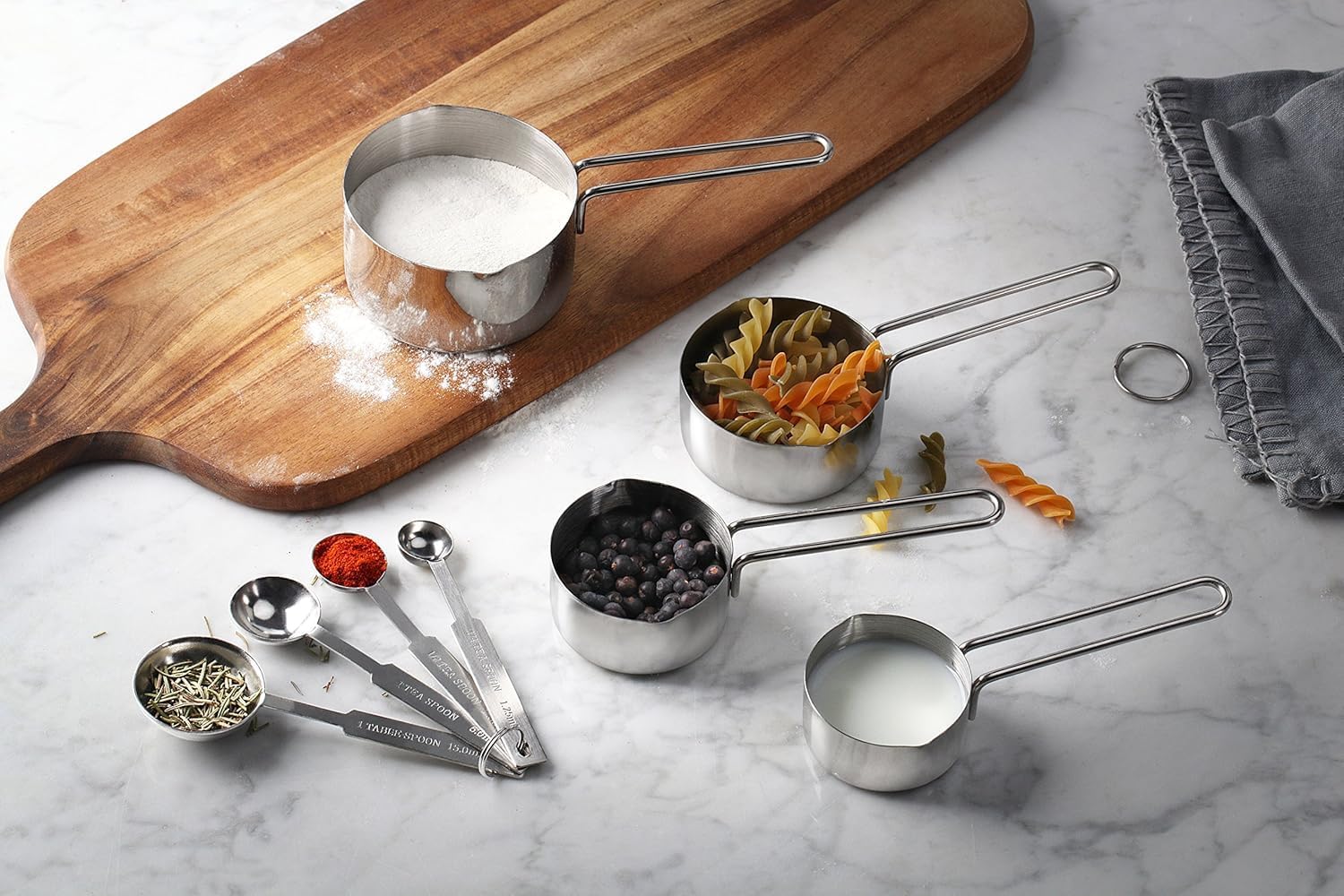 COMPLETE SET: Premium stainless steel measuring set includes 4 measuring cups and 4 measuring spoons for precise kitchen measurements
