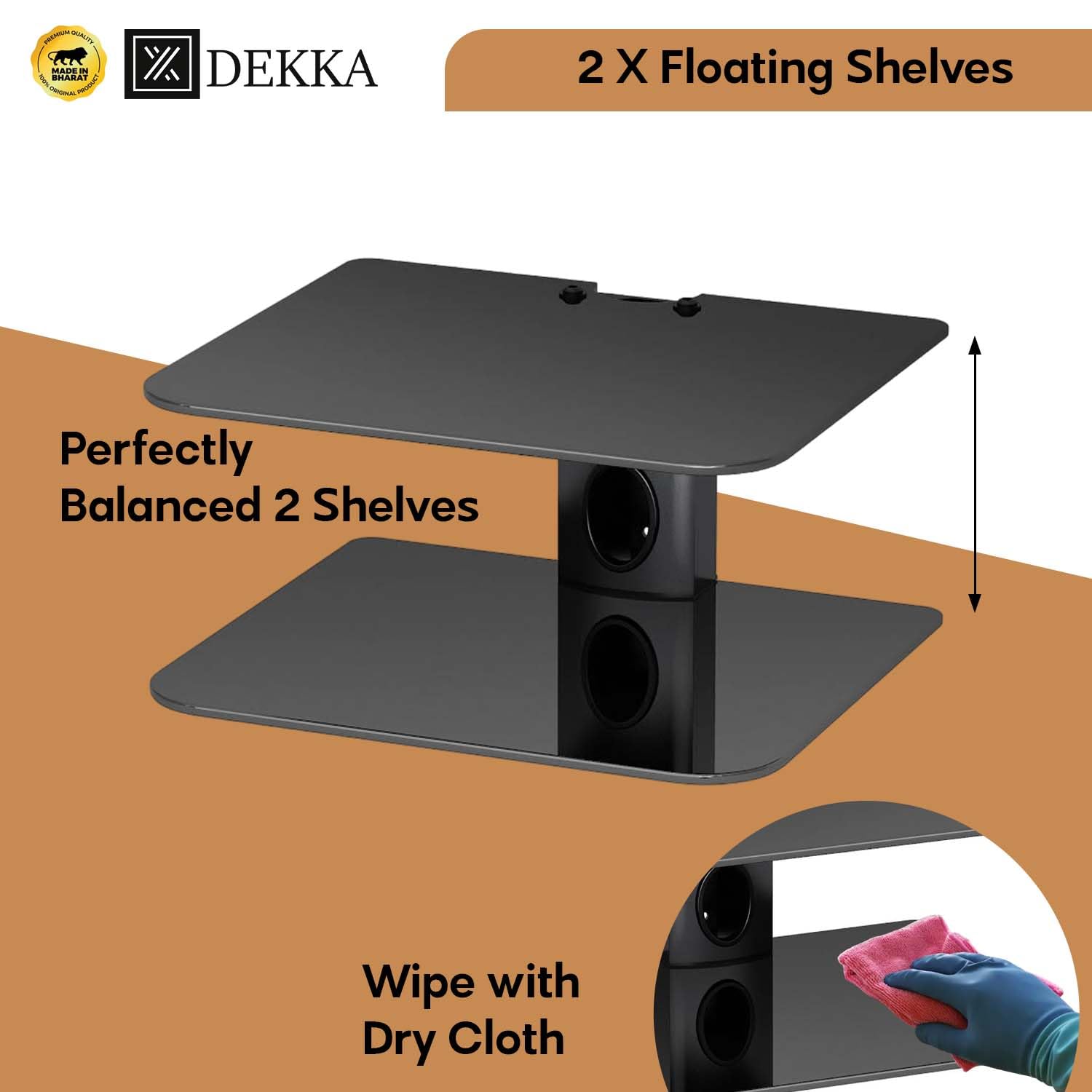 Dekka Glass Shelves Wall Mount Shelves for Bedroom Living Room,2X Stylish Black Floating WiFi Router Stand and Speaker Shelf for Home and Office