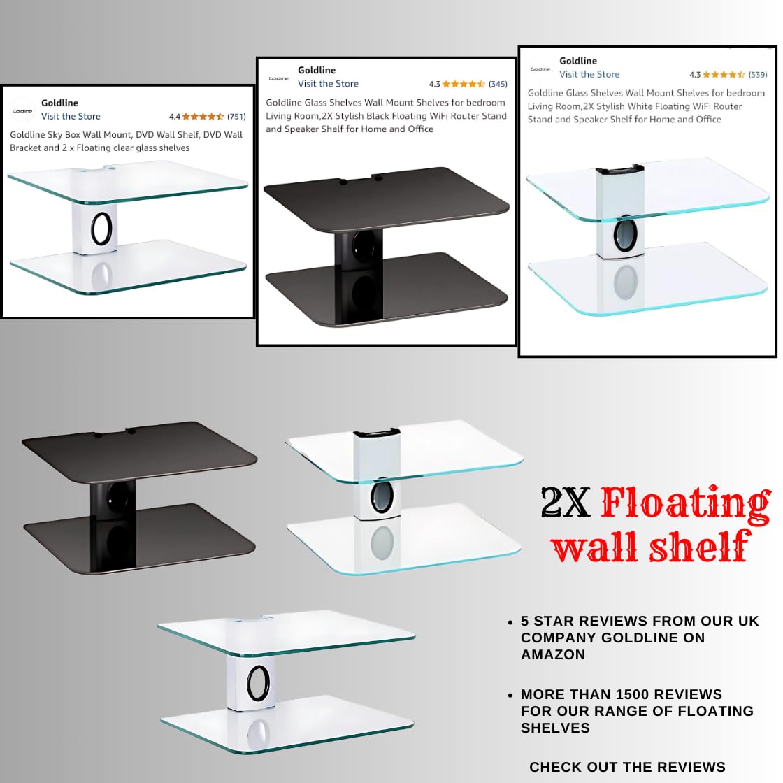 Technical Excellence: Enjoy the perfectly balanced 2 shelves, Featuring a sleek design with no unsightly arms under the glass and giving a clear floating shelves effect