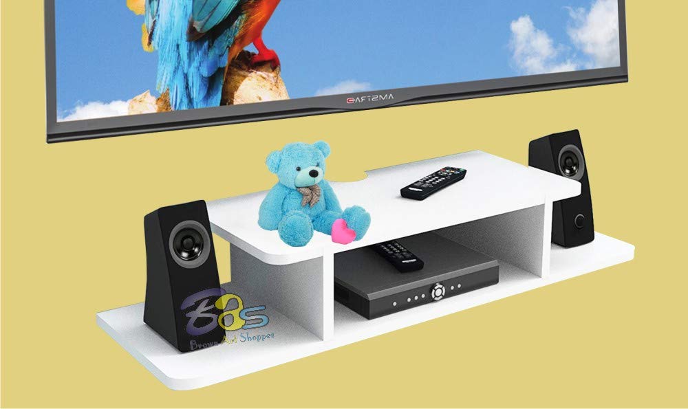 Made by Brown Art Shoppee Wooden Shelf Multi utility TV unit, with dedicated space your remote and set top box and provision for keeping other items like magazines, photo frames and decorative objects. It is easy to mount on the wall, and can be removed and shifted with ease. Wooden Stand Perfect For all Set Top Box Size