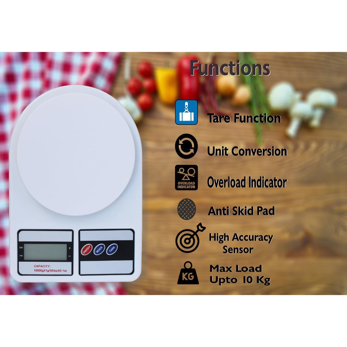 Atom 10Kg Kitchen Weight Machine 6 Months Warranty, Digital Scale with LCD Display, Scale for Home Baking, Cooking & Balance Diet. Weighing Machine with capacity 10Kg, SF400/A121,Color May Vary