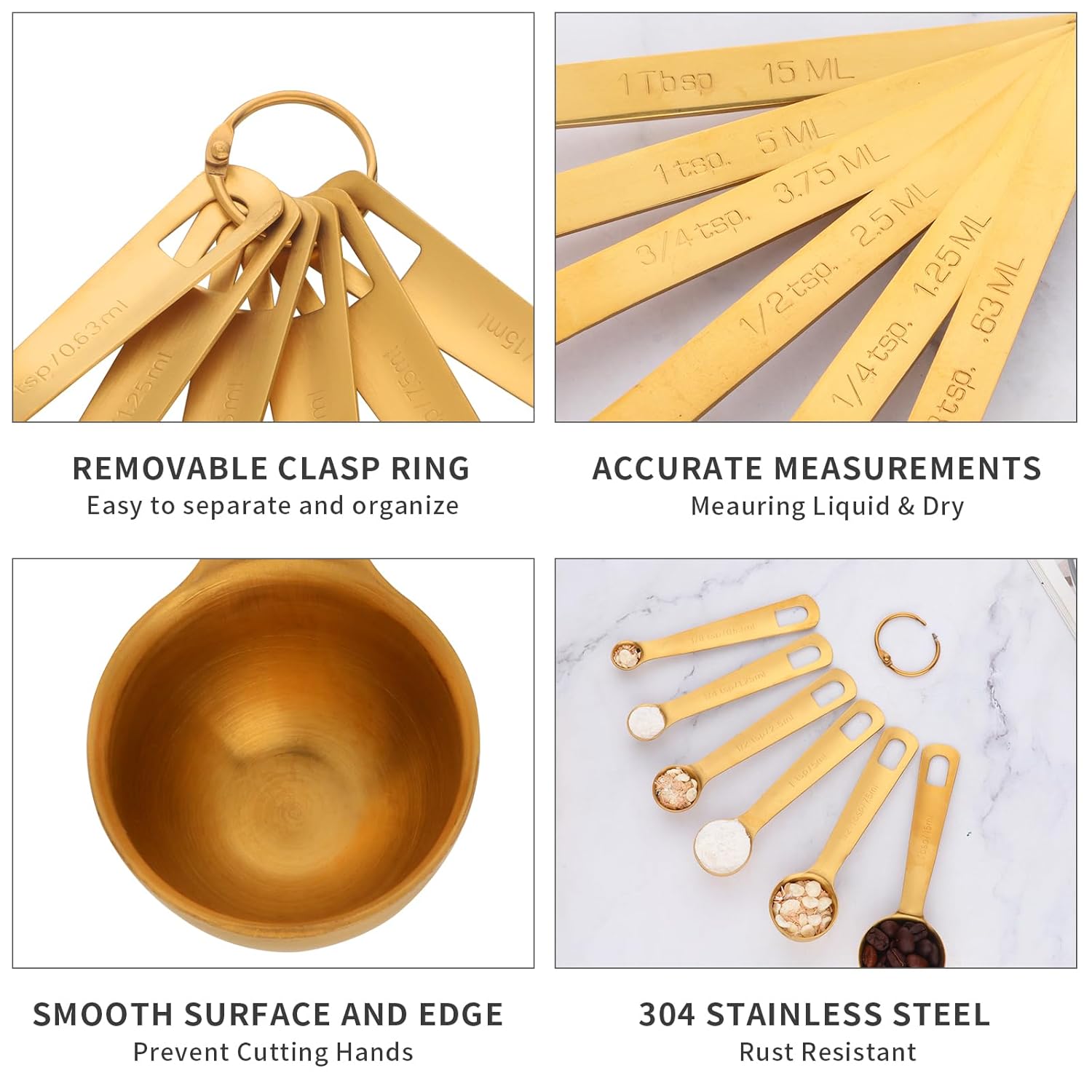 ⭐[ENJOY PROFESSIONAL COOKING] Our measuring spoons are elegant, stylish, and durable. Designed for professional chef, so impress your friends and family with your delicious cooking. The exquisite designed measuring spoons are also great gifts for your love ones.
