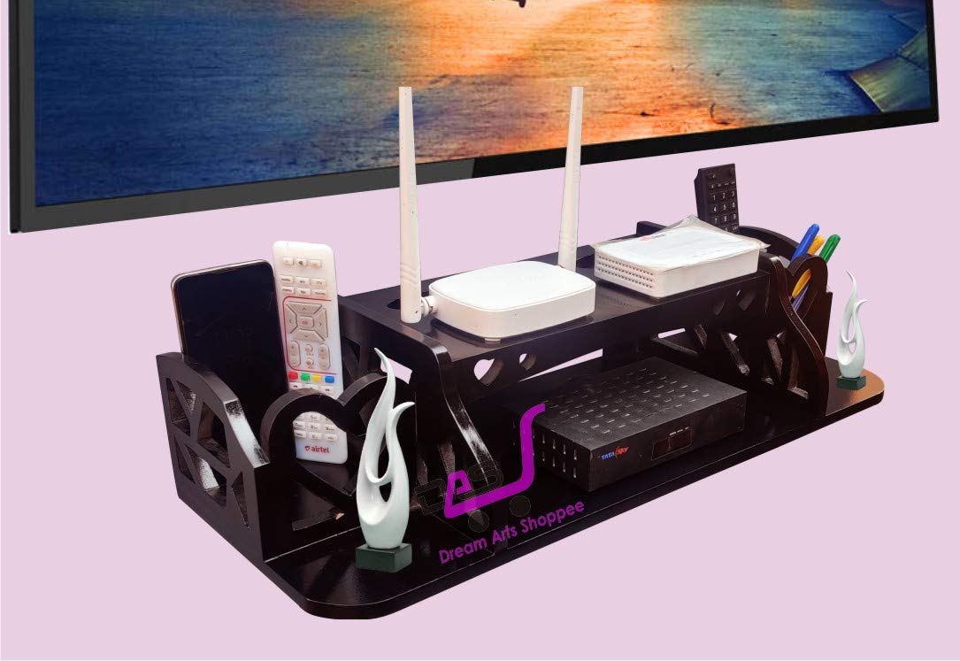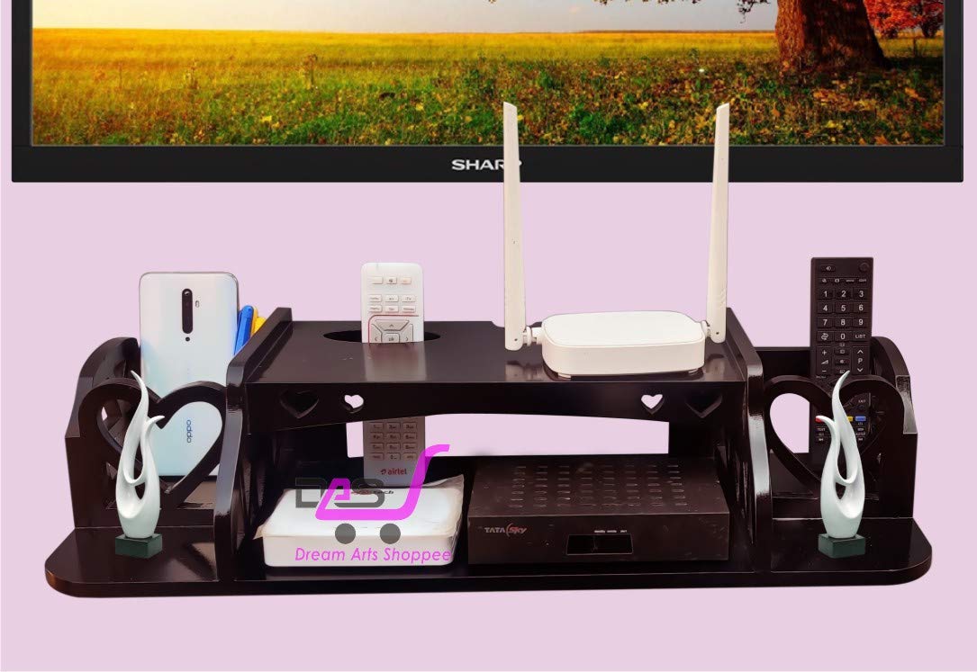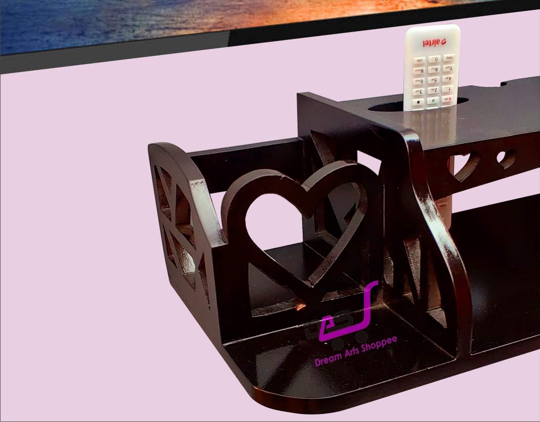 Made by Dream Arts Shoppee Wooden Shelf Multi utility TV unit, with dedicated space your remote and set top box and provision for keeping other items like magazines, photo frames and decorative objects. It is easy to mount on the wall, and can be removed and shifted with ease. Wooden Stand Perfect For all Set Top Box Size.