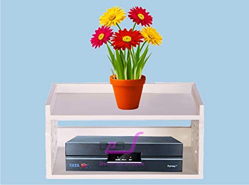 Home Furniture Dream Arts Shoppee Set Top Box Stand Wall Shelf & WiFi Modem Display Rack for Living with Side Craving Cutting Design (White)