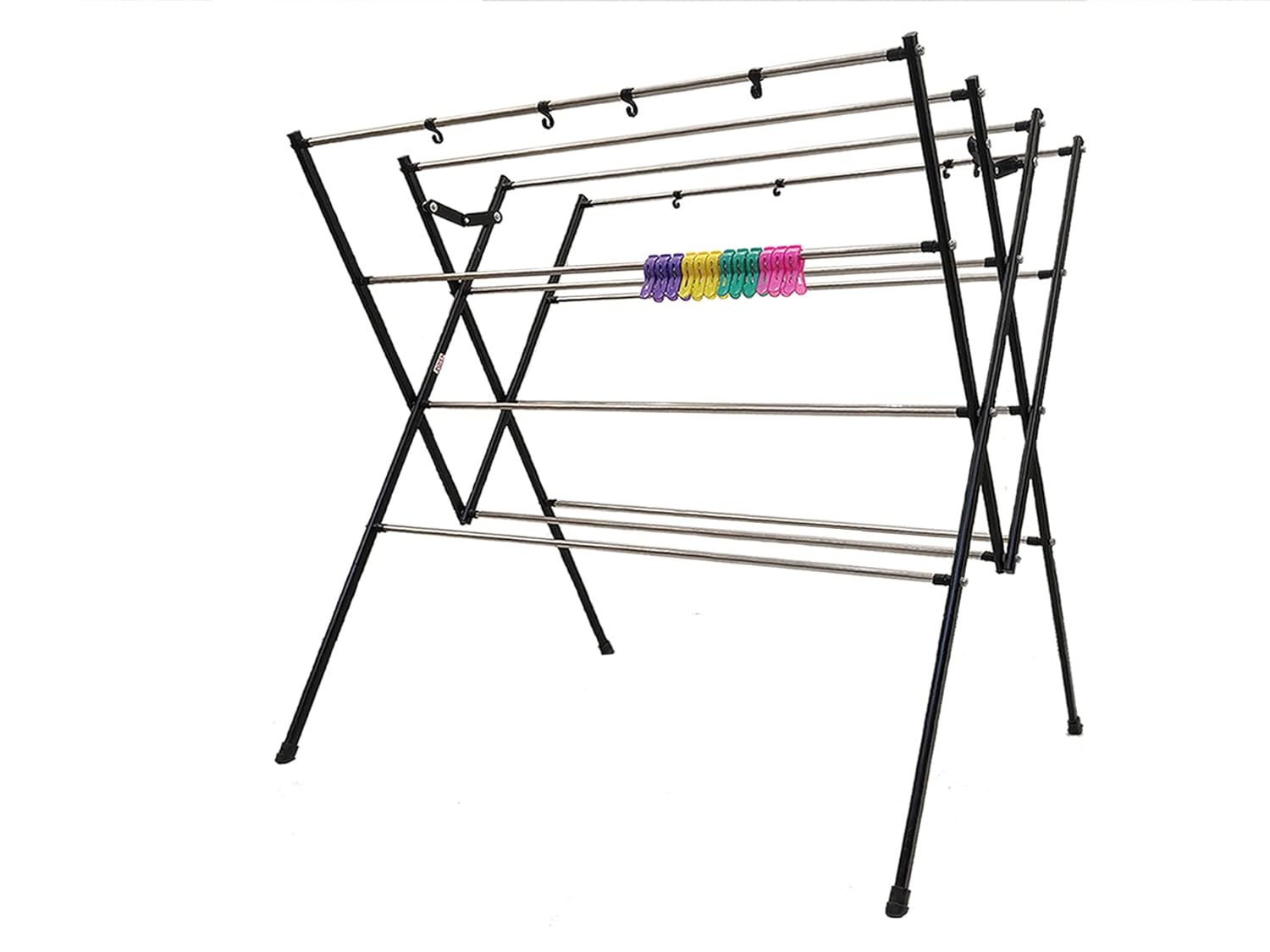 LiMETRO STEEL Stainless Steel Double Pole 3 Layer Stainless Steel Cloth Drying Stand with Hanger