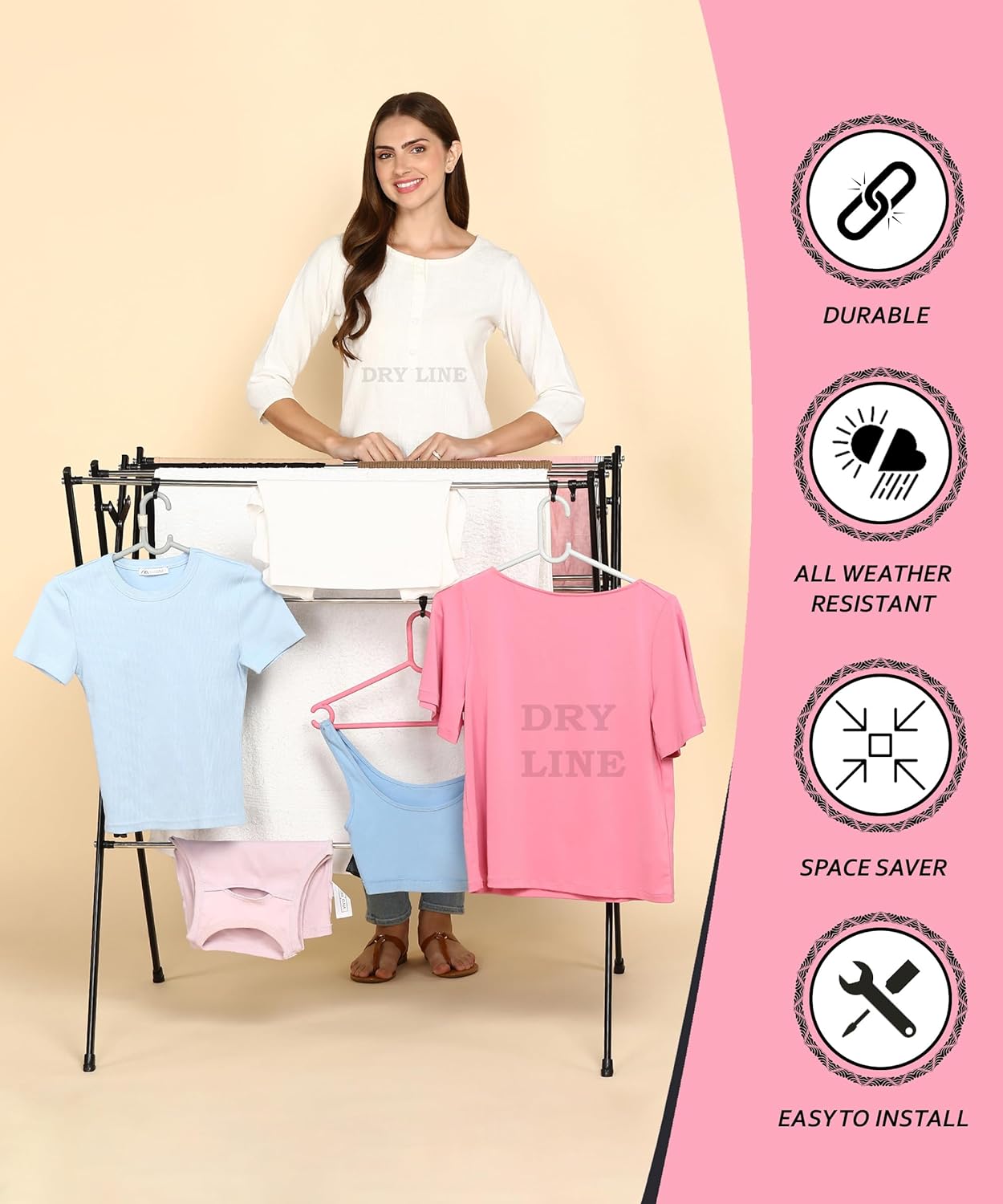MADE IN INDIA – The Dry Line Basic clot dryer and all its components are 100% manufactured in India .