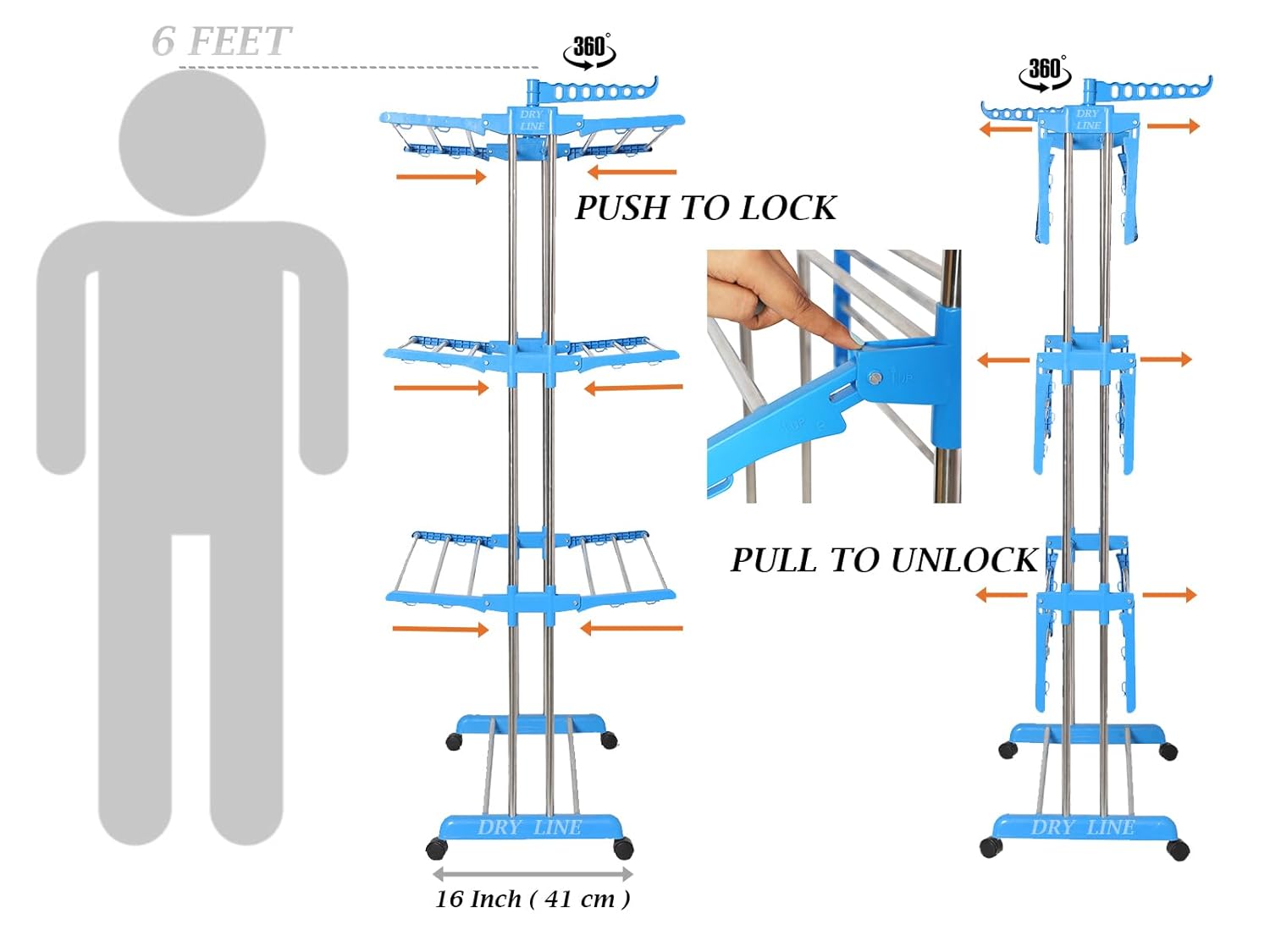 Wide Drying Bars – This DRY LINE product is ergonomically designed so that all the drying rods are atleast 3-4 inches away for proper ventilation and faster drying of clothes