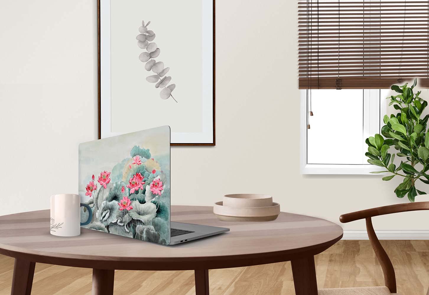 DWELLSINDIA Lotus Skin/Sticker for Laptops Upto 15.6 Inch Suitable for HP, Lenovo, Dell, Acer, Asus (HD Quality, Blue – Pack of 1