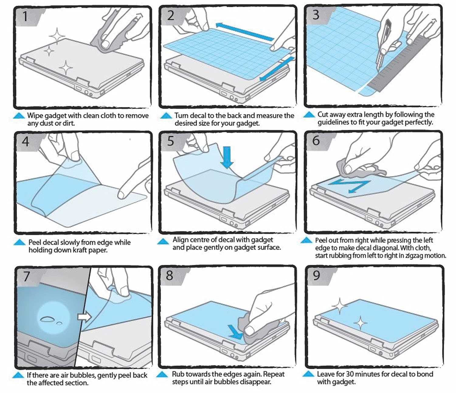 A unique, stylish and essential laptop skin by Galaxsia for your laptop which can be attached in minutes and safe guards your laptop. Specification: dimensions (W x H): 13.8 inches x 9.6 inches. Compatibility: most laptops with screen sizes 14 inches material: Vinyl thin and tough. Instructions for application: 1. Make sure your laptop is clean. Wipe it off with a soft cloth. The laptop should be devoid of dust, fat or grease – otherwise the laptop skin may not stick to your laptop as well as it’s supposed to.2. Take the measurement of the applying area 3. Trim the exact size before applying with a blade/scissors 4. Align the laptop skin on your laptop, take care that you put it on straight and in the exact position that you want to place it 5. Remove only one side of the liner from sheet, align to the applying surface and start attaching them slowly 6. Proceed carefully with the use of a clean cloth and/or a plastic card (i.e. ATM card) to assure no air bubbles remain until the liner is removed.