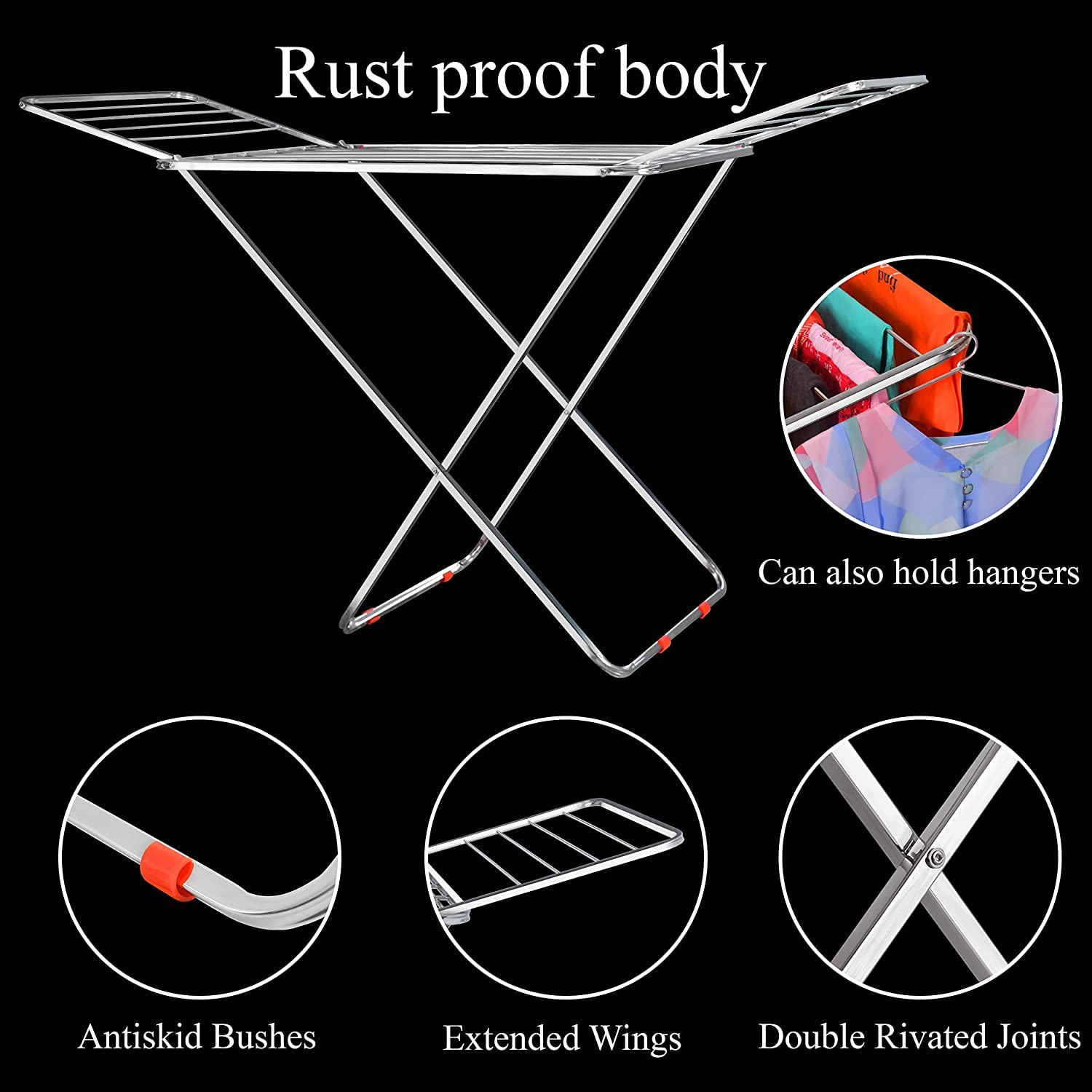 Stable & Sturdy Frame – Strong build ensures excellent balance and stability even when fully loaded with wet clothes.