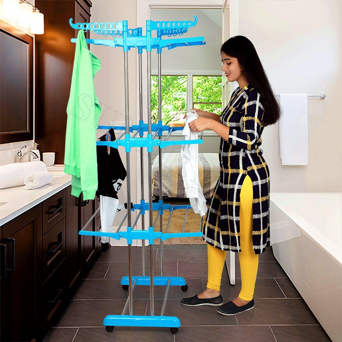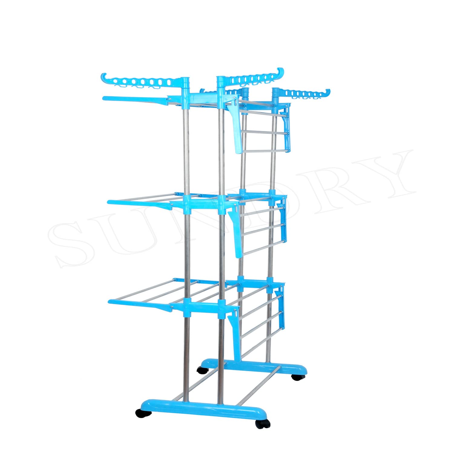 [Premium Material] The drying rack clothing is made of premium iron pipe and plastic, with strong load-bearing capacity. Each drying rack layer can bear up to 5kg and each laundry drying rack side wing can bear up to 56kg.