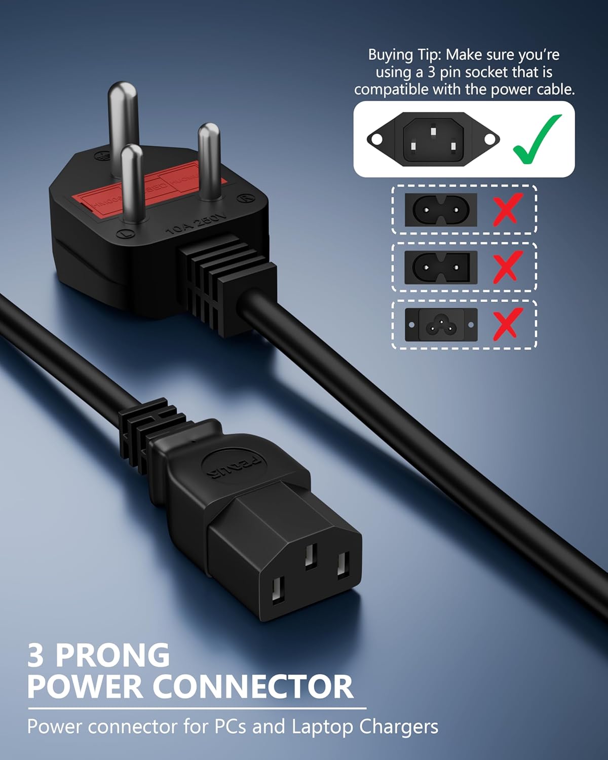 ▶ ADVANCED FUSE PROTECTION FOR COMPLETE SAFETY: Our power cable is equipped with a built-in 10 amp fuse that acts as a protective safeguard for your devices. This fuse is designed to cut off power in case of overloads, short circuits, or power surges, preventing any damage to your valuable electronics. Unlike ordinary cables, this fuse mechanism provides an extra layer of security, ensuring that your laptop or desktop is never exposed to sudden electrical fluctuations.