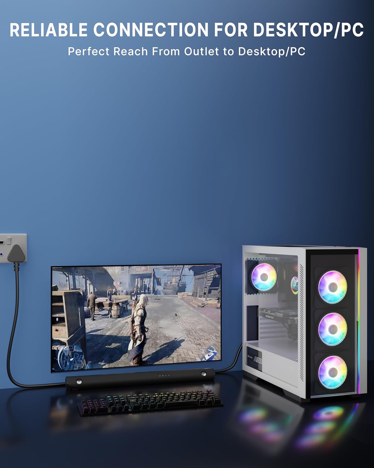 ▶UNIVERSALLY COMPATIBLE – Fits almost anything that uses a three-pin power connection Will fit all brands Computer Desktop PC, Gaming CPU, TV, Monitor, Game Console, scanners, PSU, Laser 3D Printer, Projector, Server, Guitar Amp, Amplifier, Subwoofer, AV Receiver, Sports Equipment, Treadmill, Pressure Cooker, Speaker System, LCD Plasma DLP Screen ceiling mounted projector, powered speakers and other appliances with similar plug.
