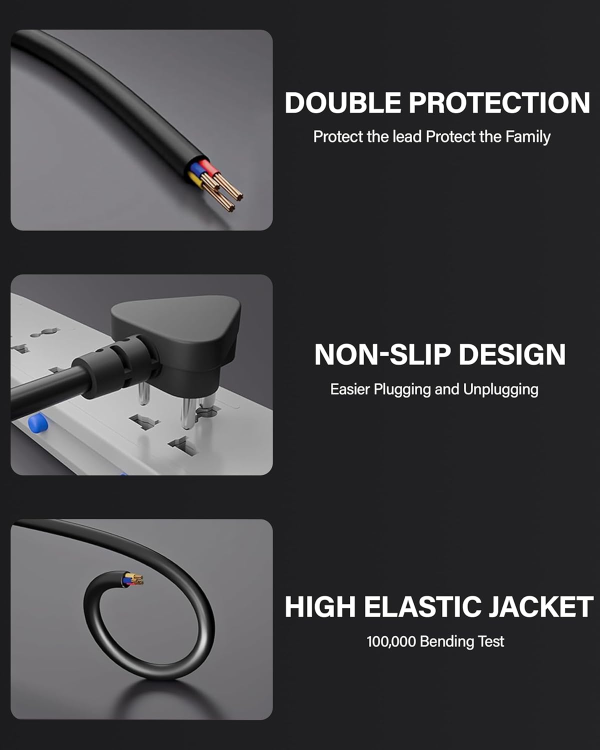 ▶SAFE & RELIABLE – Made with high-quality materials, Overheat, Over Current, Over Voltage and Short Circuit Protection, it is Safe and Reliable to Use, Durable Fully molded design, resilient, maximum safety, durability and long life cord is made of PVC material, it has the advantages of environmental protection, waterproof, wear resistance, etc. After more than 10,000 bending tests, it has good Conductivity and stability and has long service.