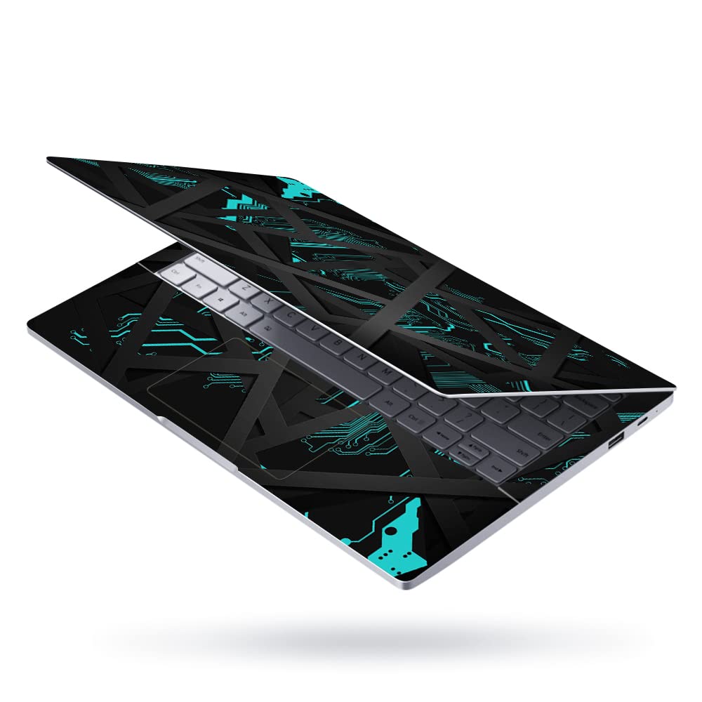 Home Electronic Finearts Full Body Laptop Skin Upto 15.6 inch Sticker Compatible for Dell/HP/Lenovo/Acer/Sony All Laptop Size Upto 14 to 15.6 Inch – Grey Bars on Cyan Circuit