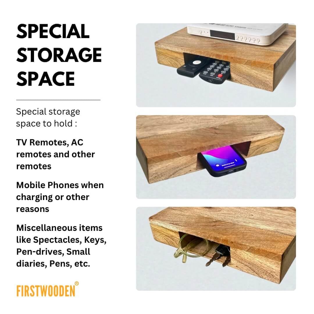 ULTIMATE ORGANISATION : Keep your set-top box, WiFi router, and remote neatly organized and easily accessible with this all-in-one wooden wall-mounted stand – the perfect solution for a clutter-free home.