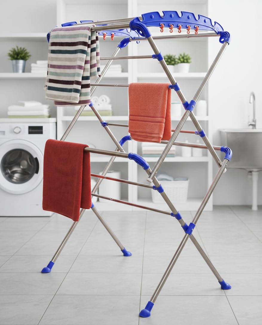 stainless steel shine adds to the aesthetic beauty of your home.highly strong, large size cloth dryer as per european standards. Adequate drying space for large family