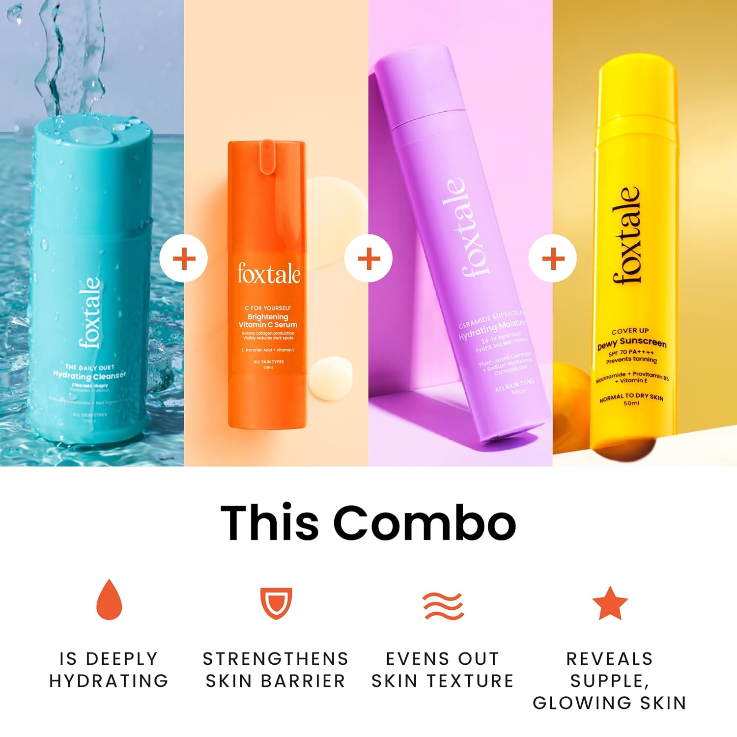 Be the first to review “Foxtale Morning Skincare Kit for Women, Men | Cleanser Face Wash-100 ml, Vitamin C Face Serum- 30 ml, Ceramide Moisturizer-50 ml, Dewy Sunscreen SPF 70- 50 ml | Skincare Gift Set for Glowing Skin” Cancel reply