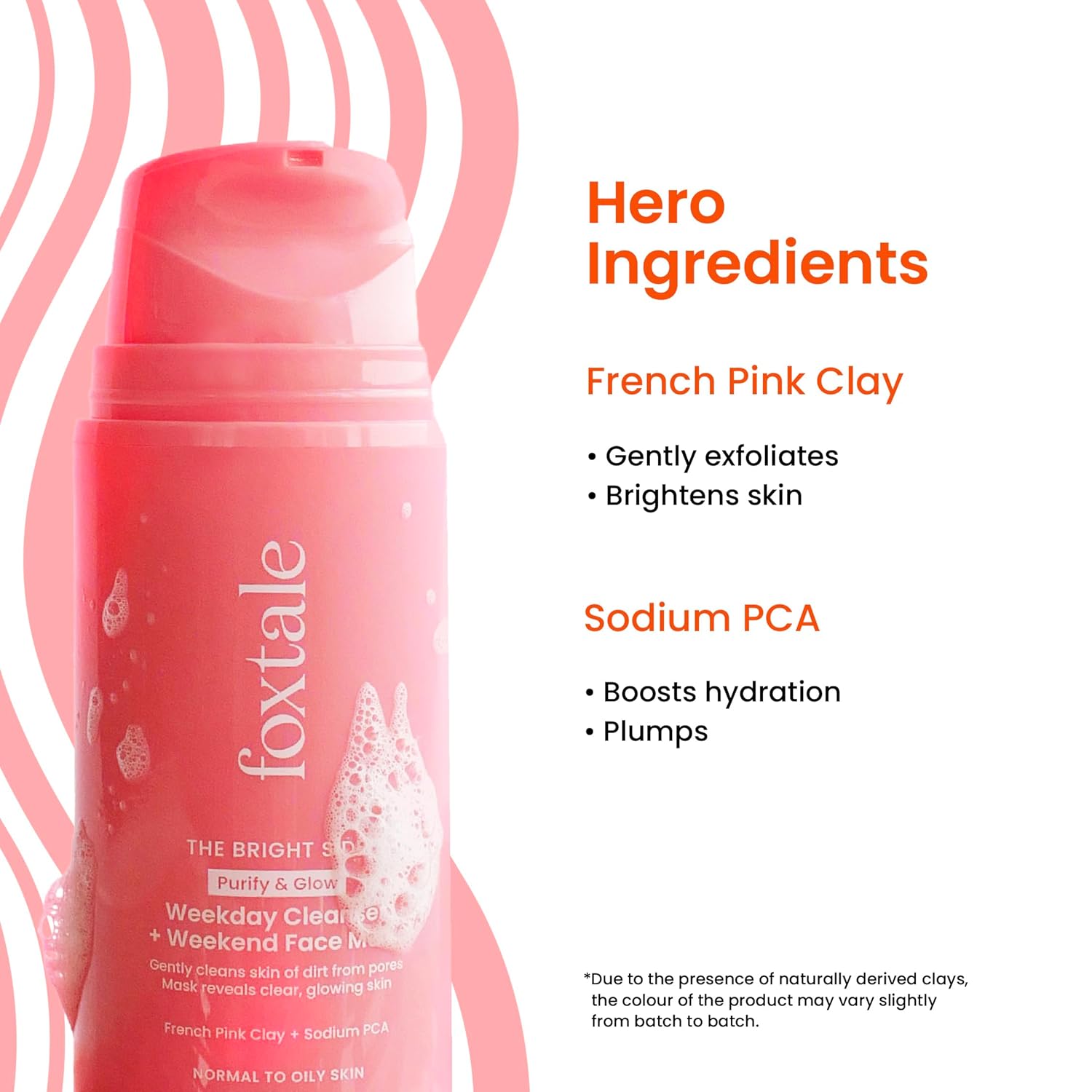What makes it unique? Foxtale Purify & Glow Cleanser + Mask With French Pink ClayFoxtale Purify & Glow Cleanser + Mask With French Pink Clay