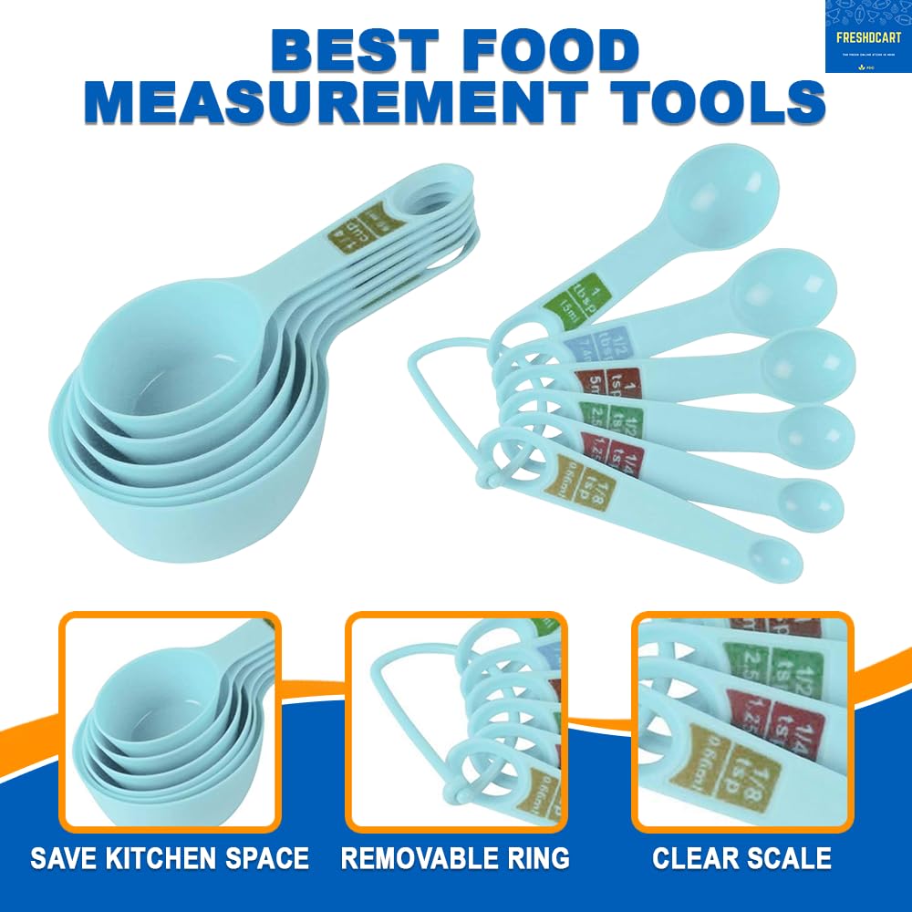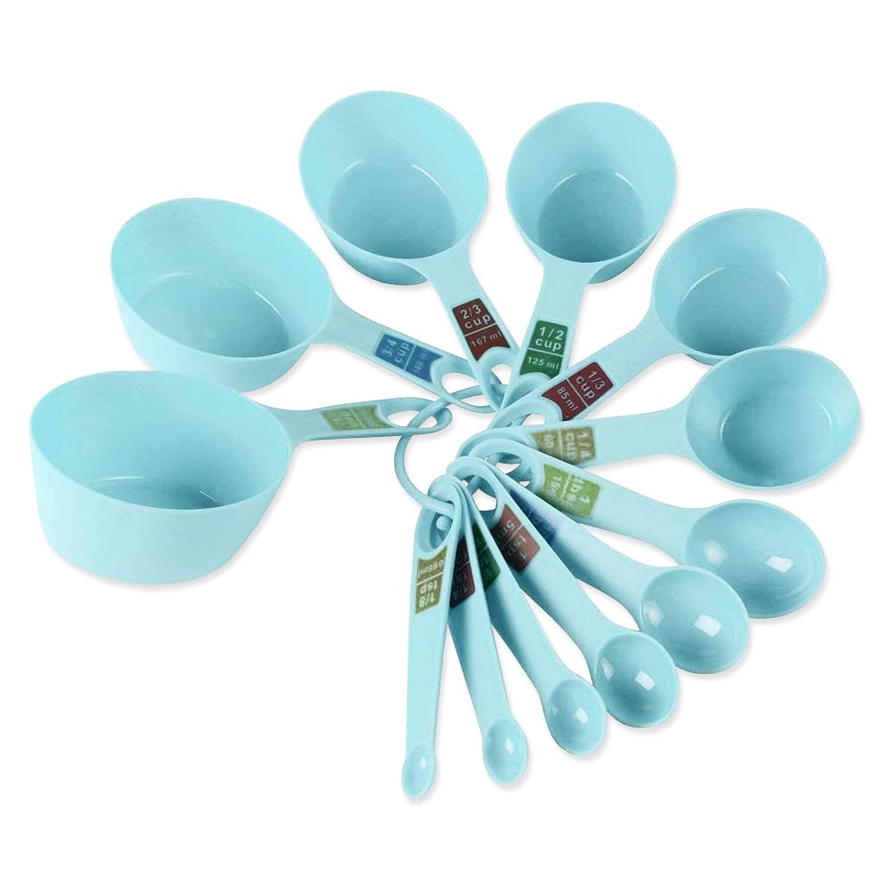 12 Measuring Cups And Spoons In A Ring Holder.Imperial and metric measurements.Accurately Measure Solid And Liquid Food Ingredients For Cooking And Baking.