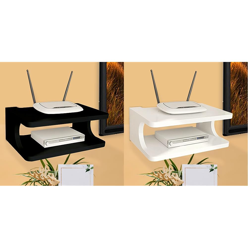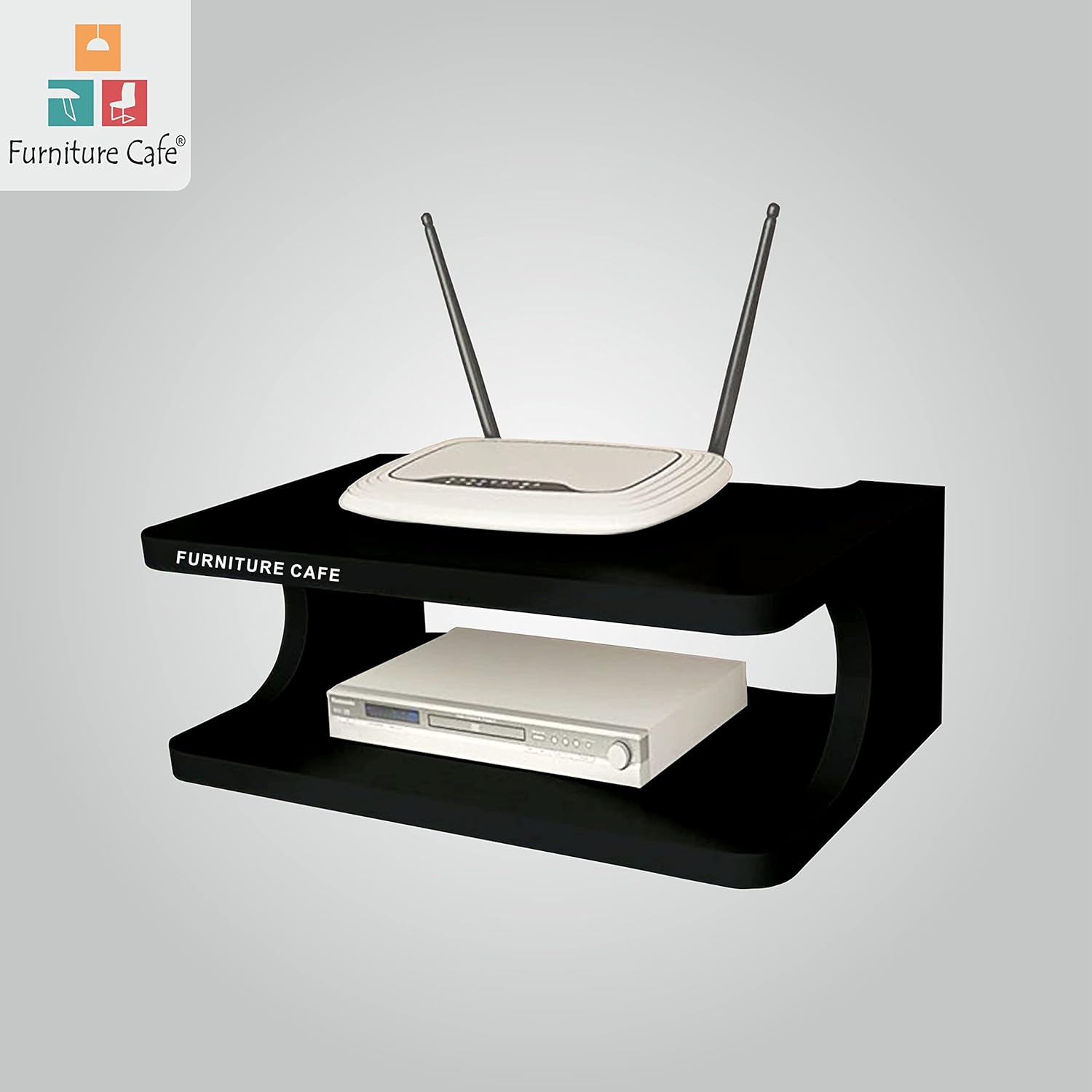 Furniture Cafe Set top Box Stand | WiFi Router Holder Wooden Wall Shelves | Setup Box Stand for Home | Wall Mount Stylish WiFi Router Holder TV Cabinet Living Room Furniture (Color-Black), Medium