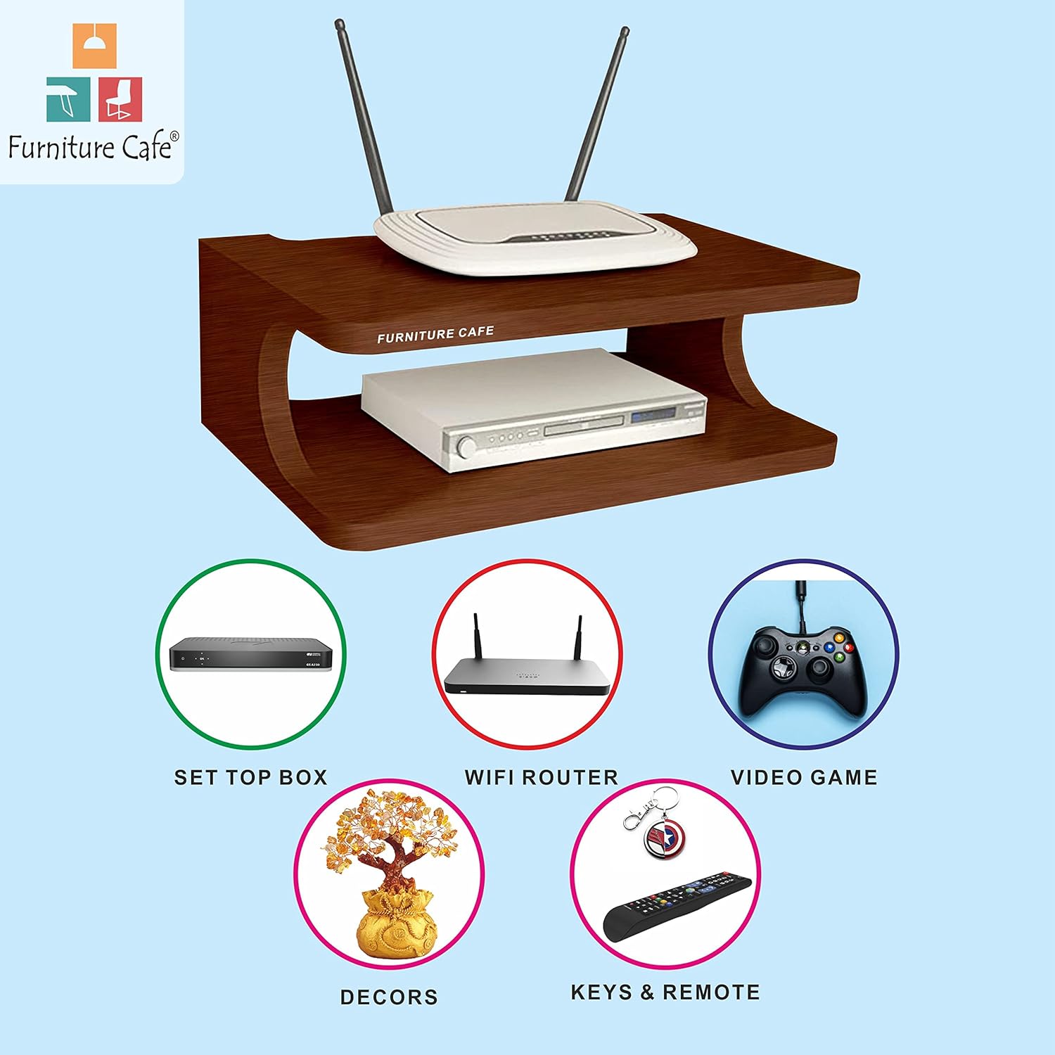 Furniture Cafe Set top Box Stand | WiFi Router Holder Wooden Wall Shelves | Setup Box Stand for Home | Wall Mount Stylish WiFi Router Holder TV Cabinet Living Room Furniture (Color-Walnut Brown)