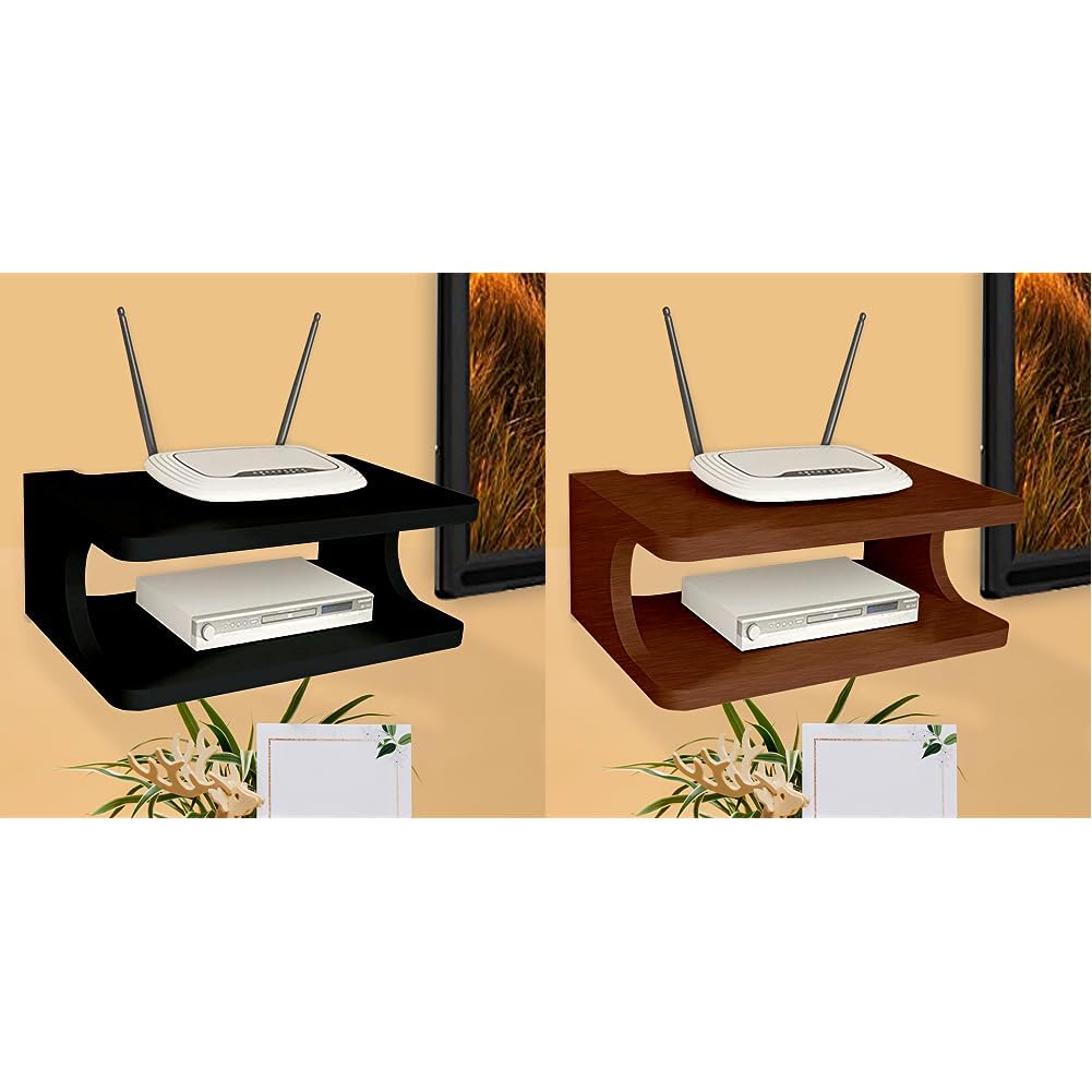 Furniture Cafe Set top Box Stand (Color-Black) Set top Box Stand WiFi Router Holder Wooden Wall Shelves Setup Box Stand (Color-Walnut Brown)