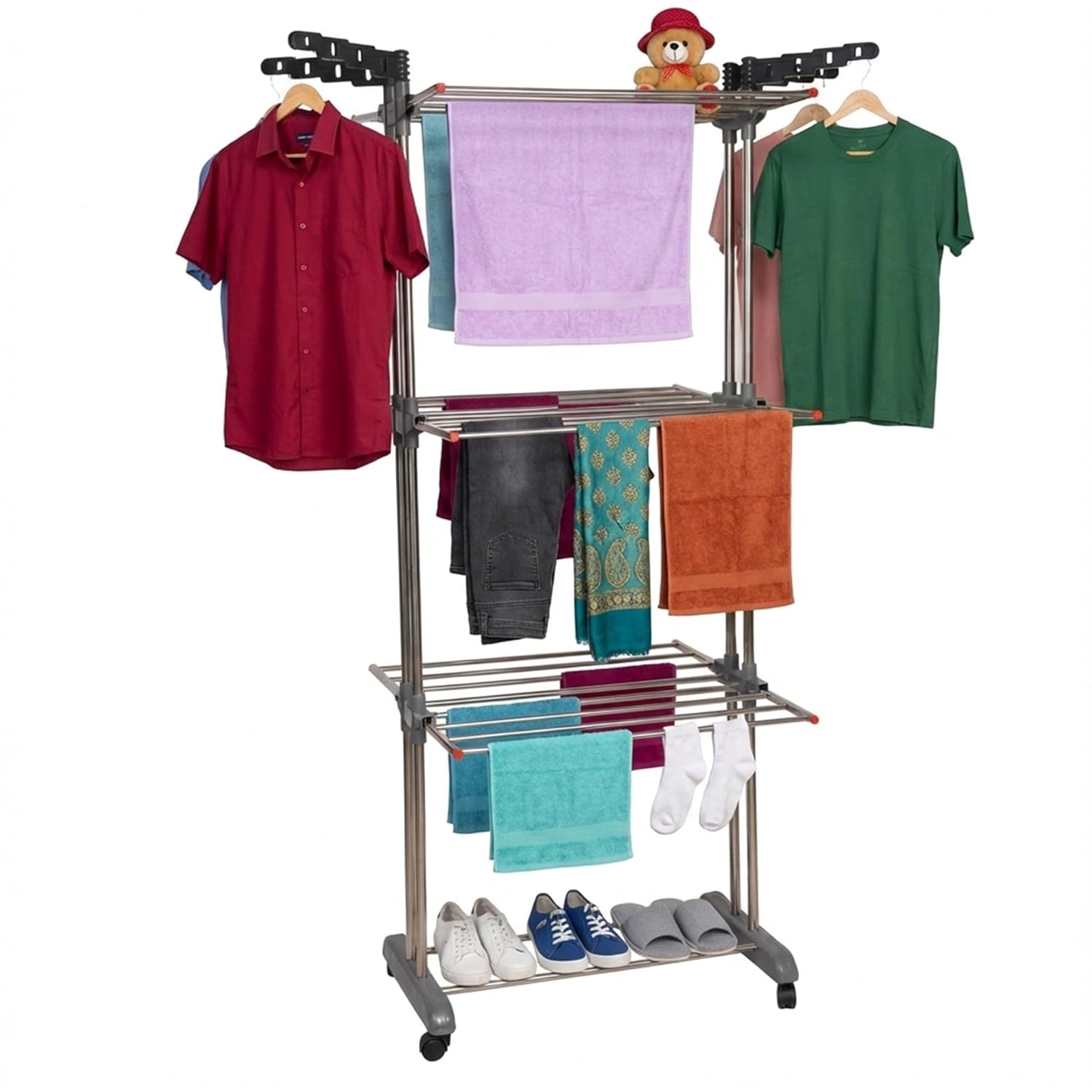 ✅ Heavy Duty Stainless Steel Clothes Drying Stand : Made from premium-grade stainless steel, this heavy duty clothes drying stand offers excellent strength and durability. Ideal as a steel cloth drying stand for daily laundry use in Indian households.