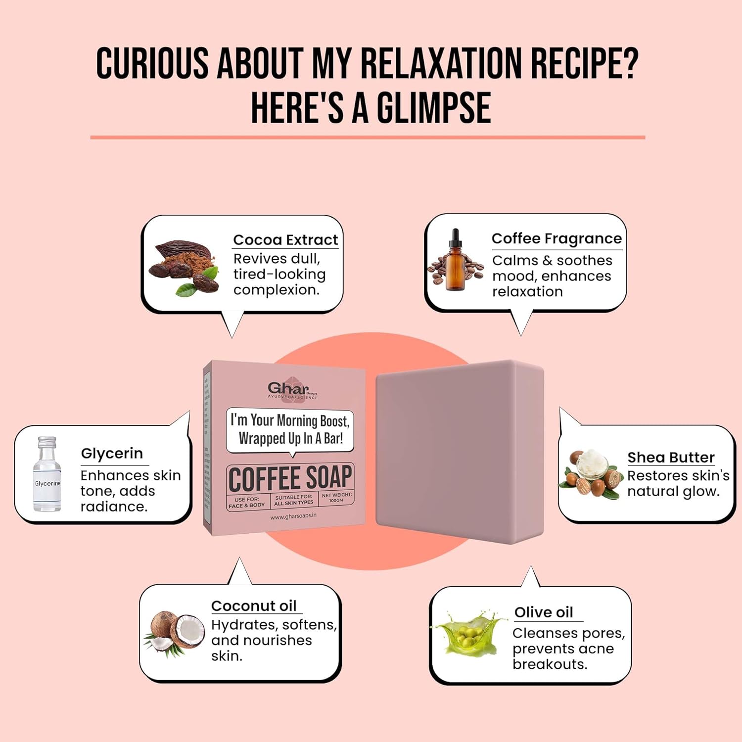 Energizes and Refreshes: Infused with the stimulating essence of coffee, this soap wakes up your senses and revitalizes your skin, making every shower a refreshing experience.