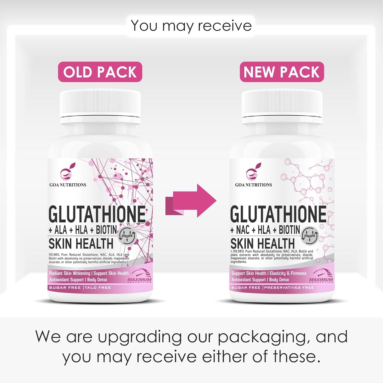L-Glutathione with N-Acetylcysteine (NAC) has 10 times better absorption and bioavailability compared to individual Glutathione.Reduce Hyperpigmentation & Melasma, Treats Photoaging, Improves uneven skin tone, Reduce Blemish, Reduces Wrinkles & Freckles. Improves skin tone in both exposed & covered body parts.Help control Melanin production responsible for Skin Darkening and Dullness.High Glutathione level helps the skin to repair itself
