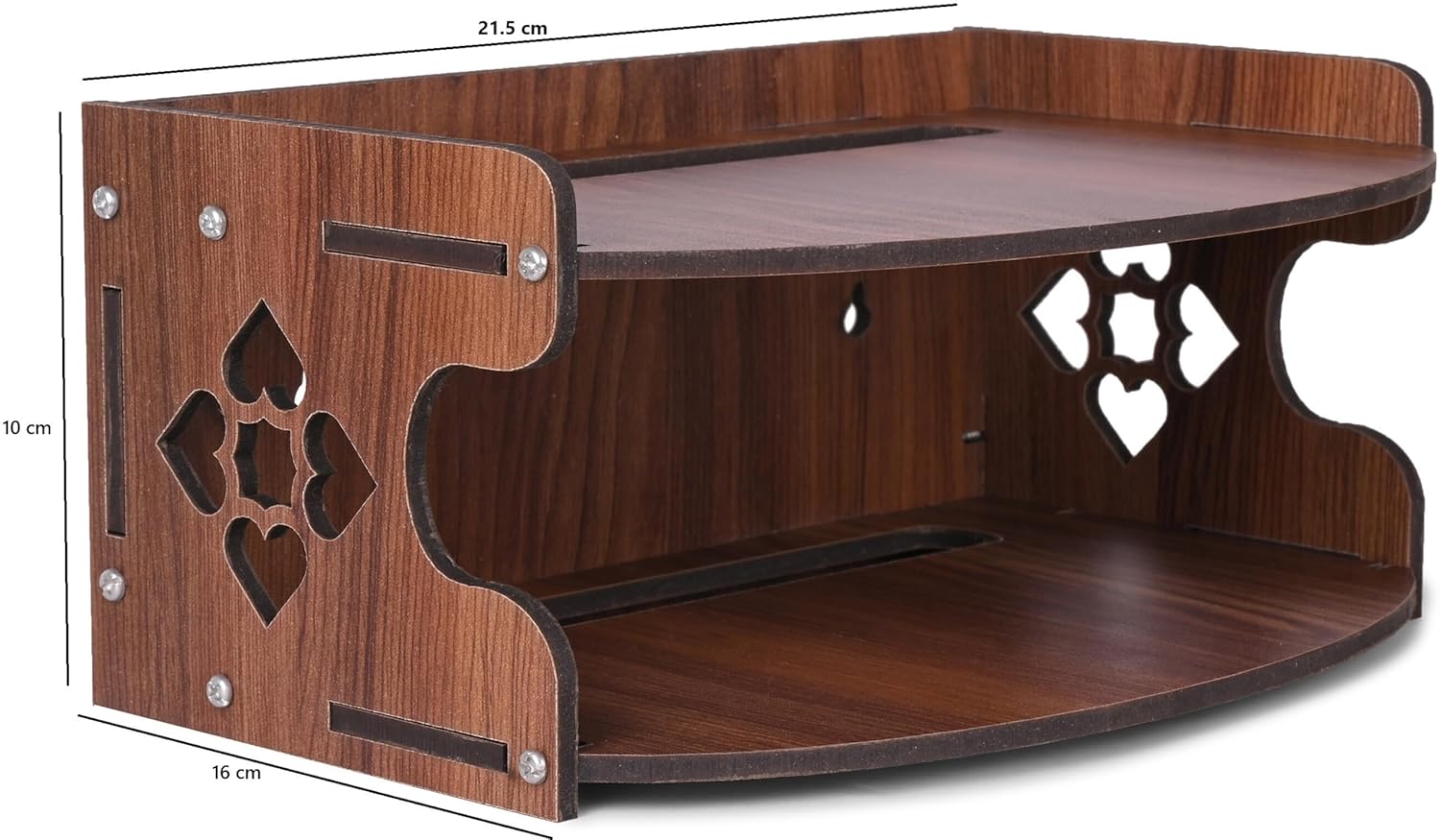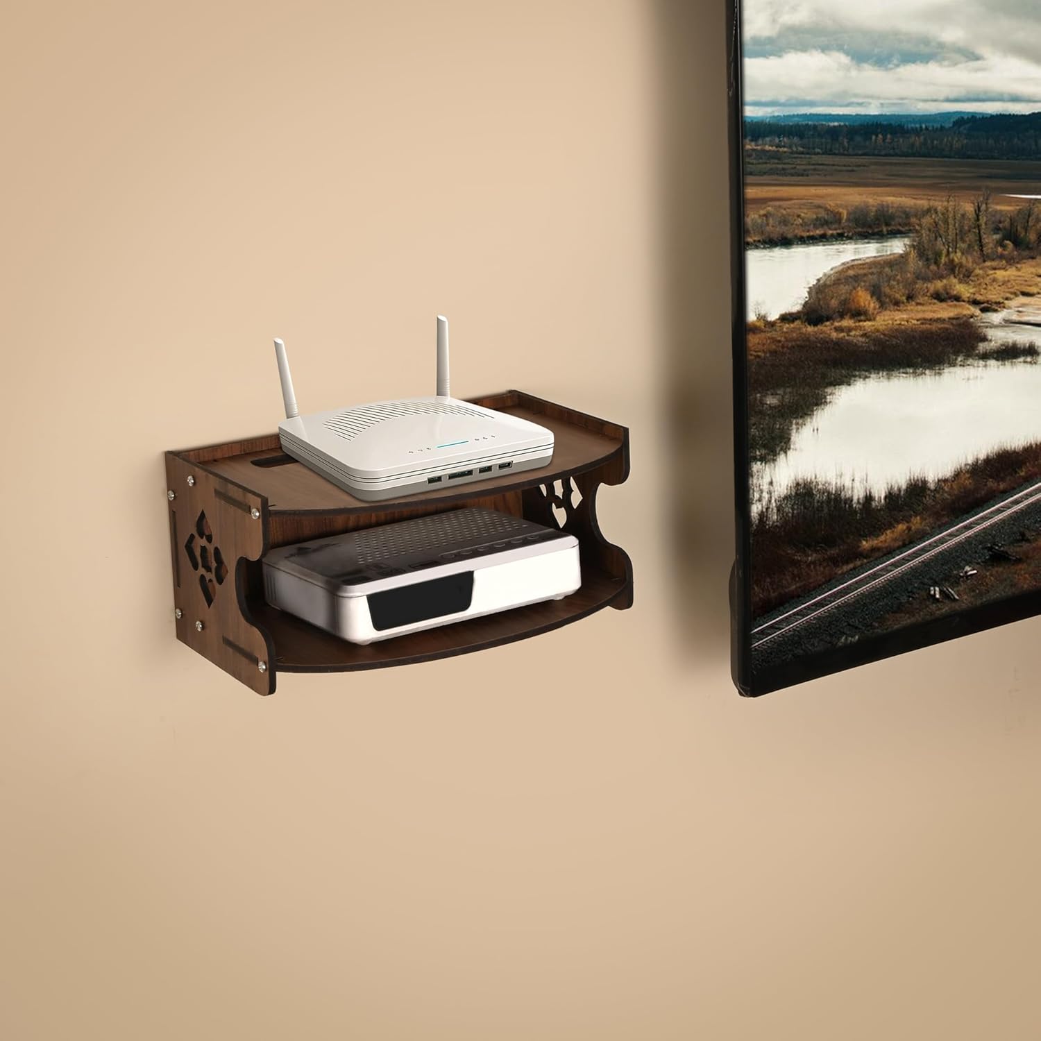 Furniture Cafe Set top Box Stand WiFi Router Holder Wooden Wall Shelves for Home Wall Mount Stylish TV Cabinet Living Room Furniture (Color-Walnut Brown)