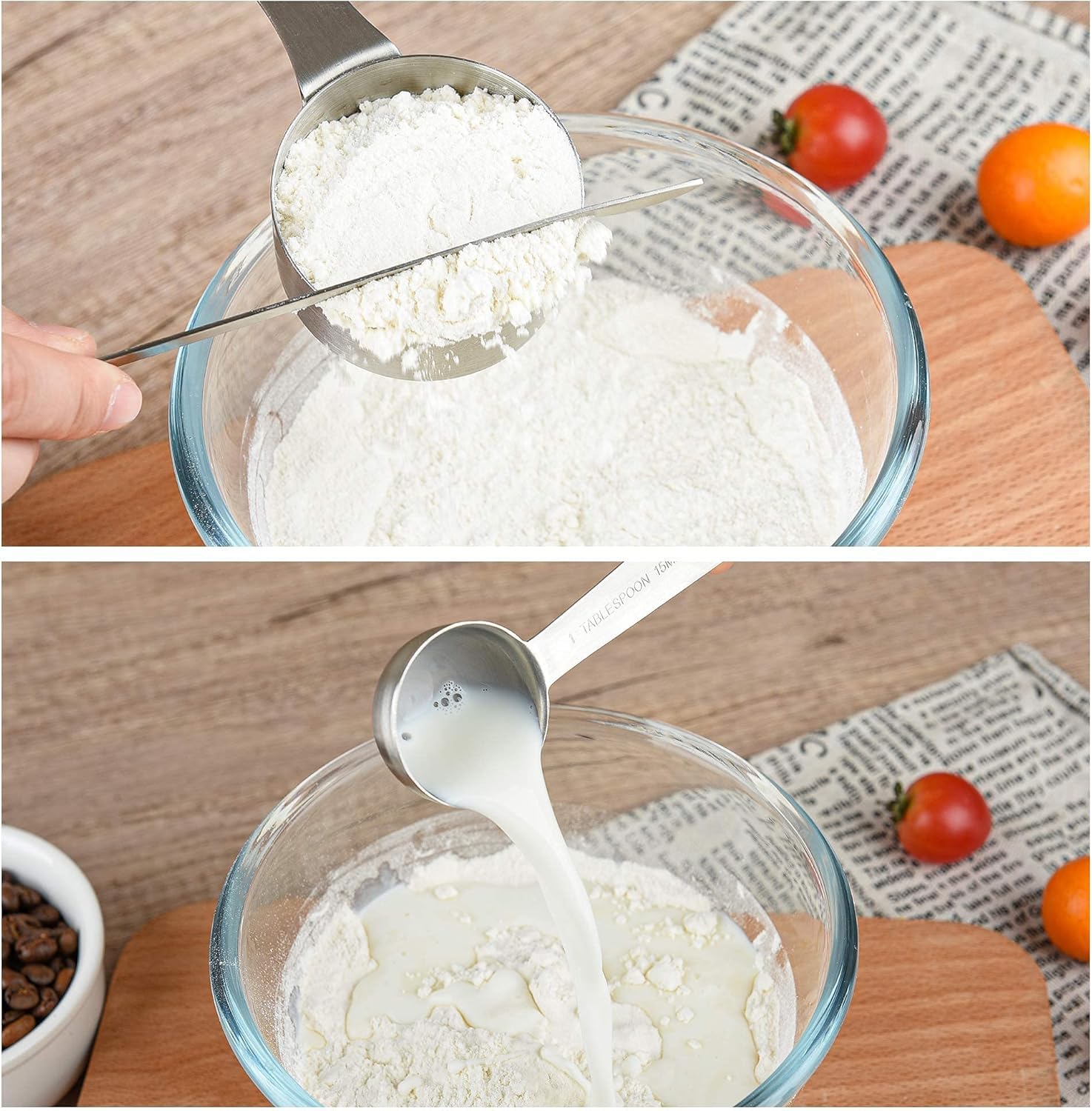 Dynore Stainless Steel Measuring Cups & Spoon Combo – Essential Kitchen Gadgets for Versatile Set for Dry or Liquid Ingredients with Handles – Set of 4 Measuring Cups and 4 Measuring Spoons