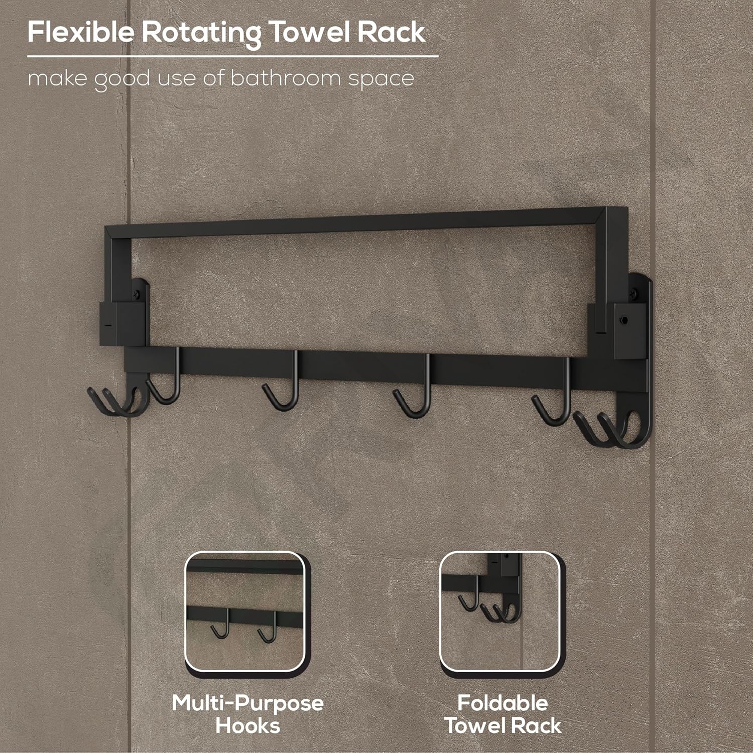 𝐅𝐨𝐥𝐝𝐚𝐛𝐥𝐞 & 𝐒𝐩𝐚𝐜𝐞-𝐒𝐚𝐯𝐢𝐧𝐠 𝐃𝐞𝐬𝐢𝐠𝐧 : Smart rotating/folding function allows you to collapse the rack when not in use, maximizing bathroom space.