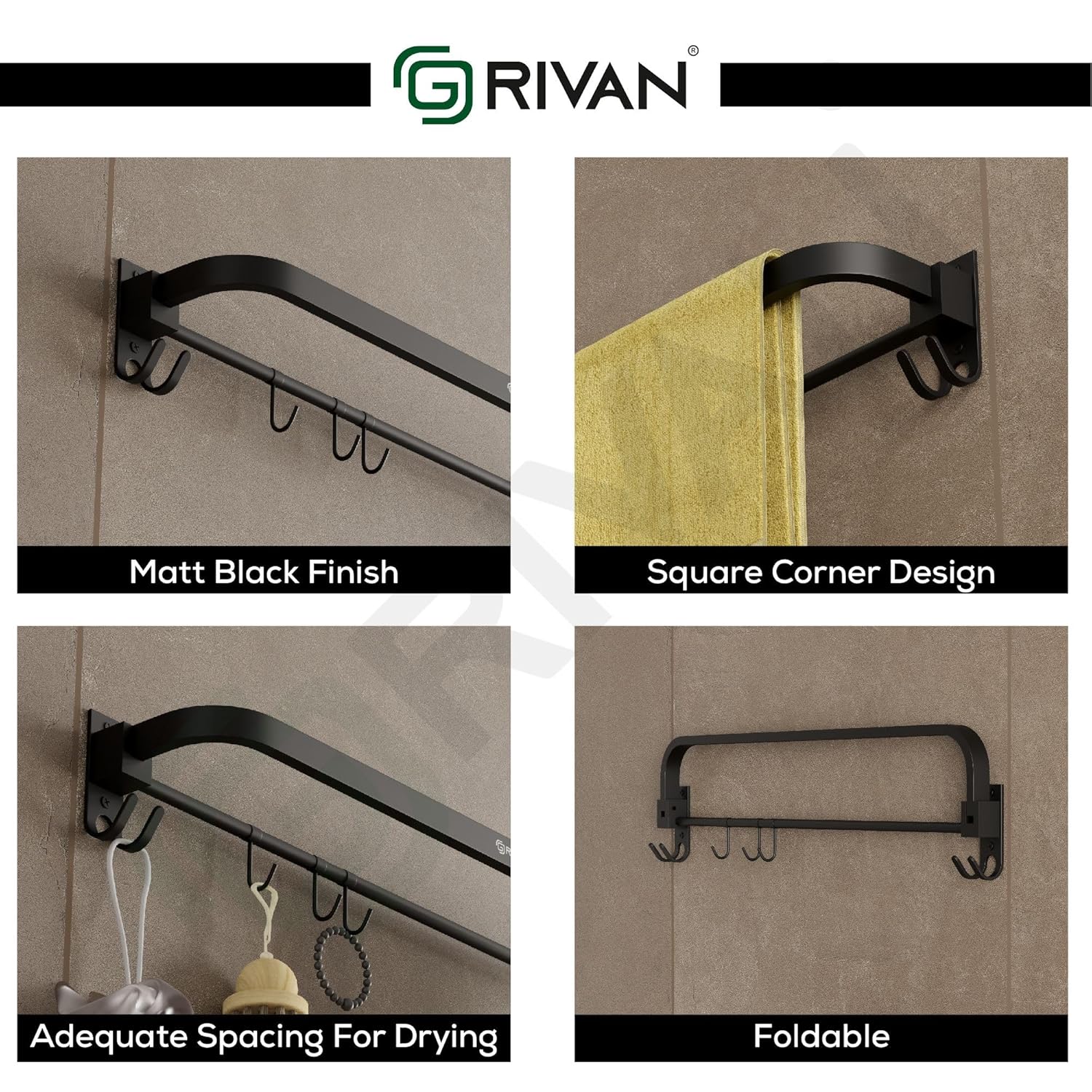 Be the first to review “GRIVAN Stylish Stainless Steel 24 Inch Foldable Towel Rod/Shelf/Stand for Bathroom, Towel Holder with Hooks and Hanger (Black Matte Finish)” Cancel reply